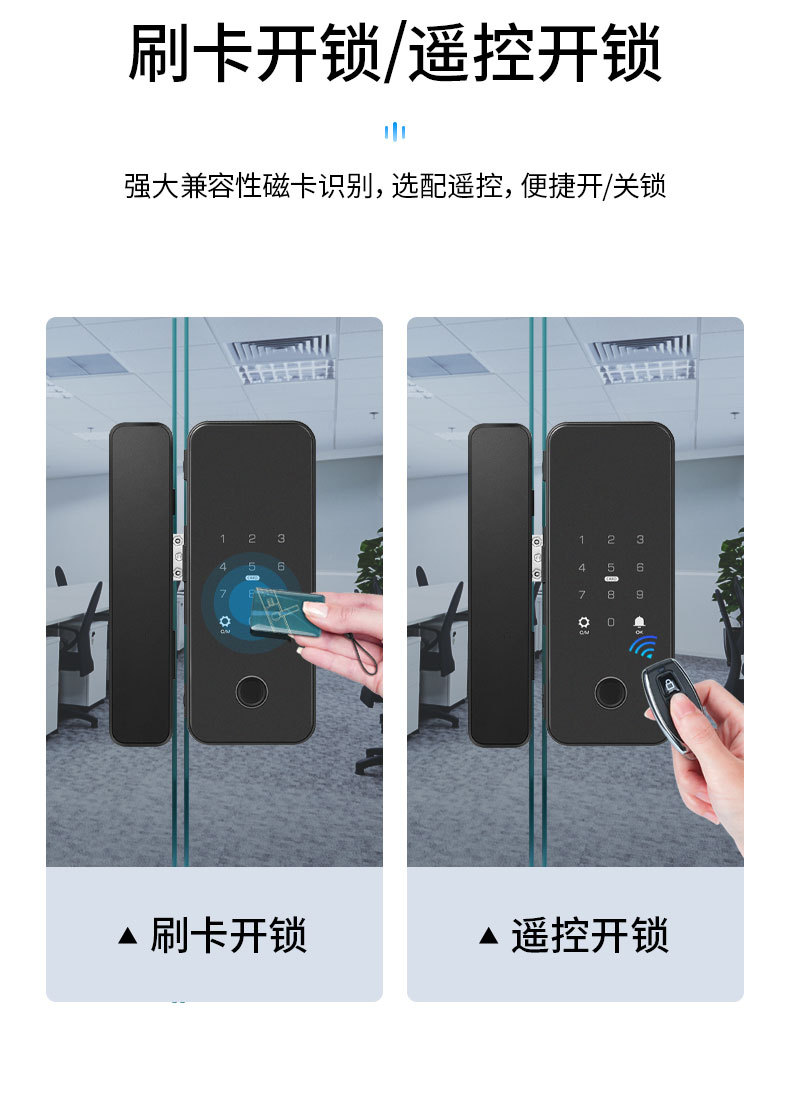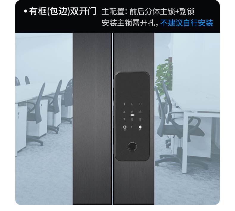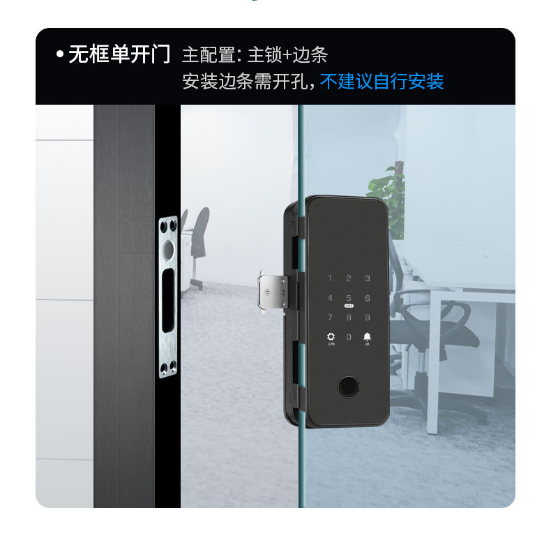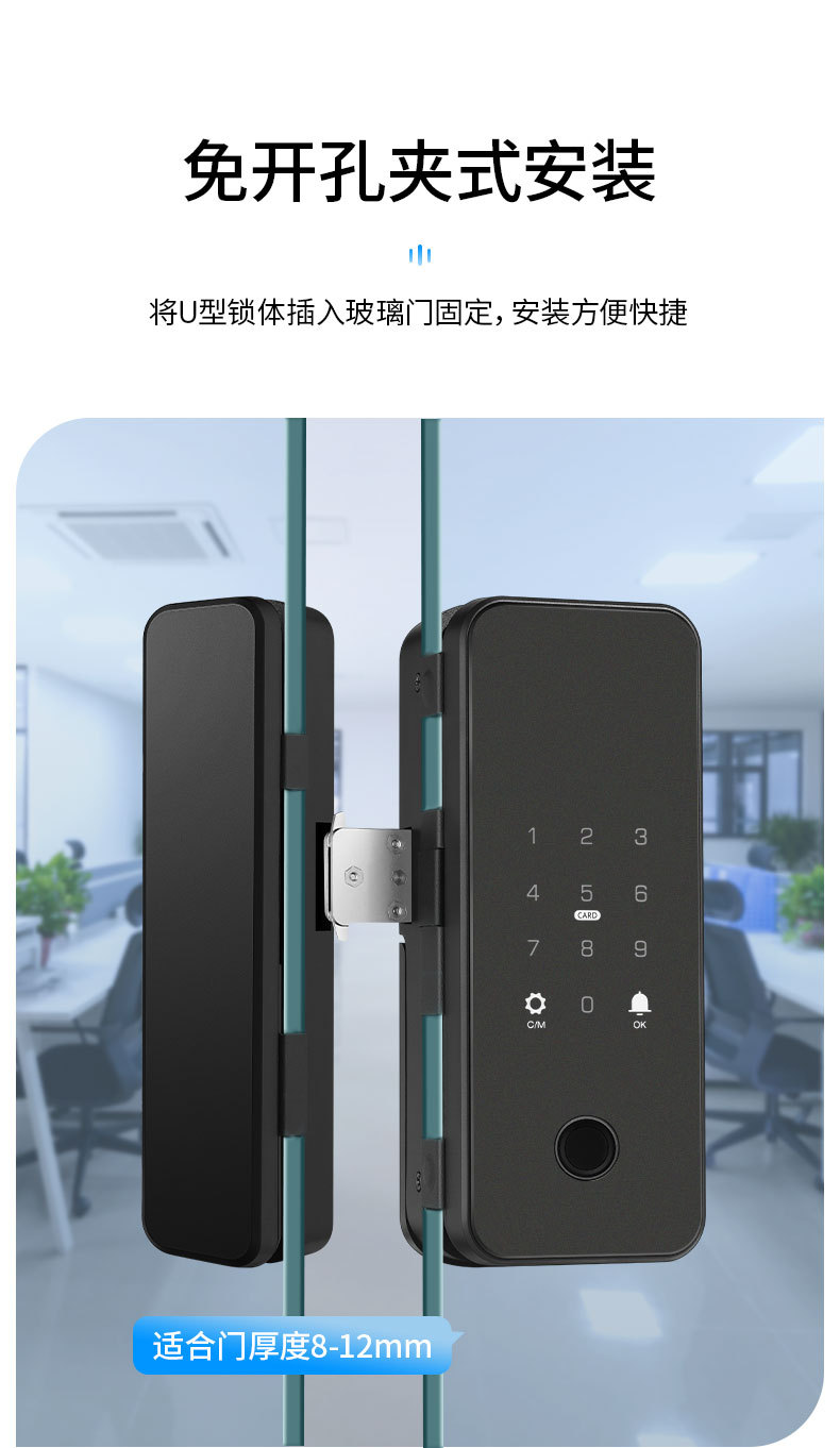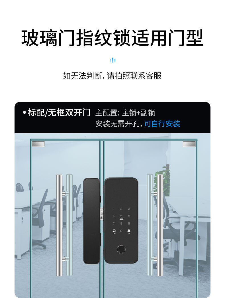 办公室玻璃门指纹锁家用免开孔单双开门密码锁带考勤玻璃门锁批发