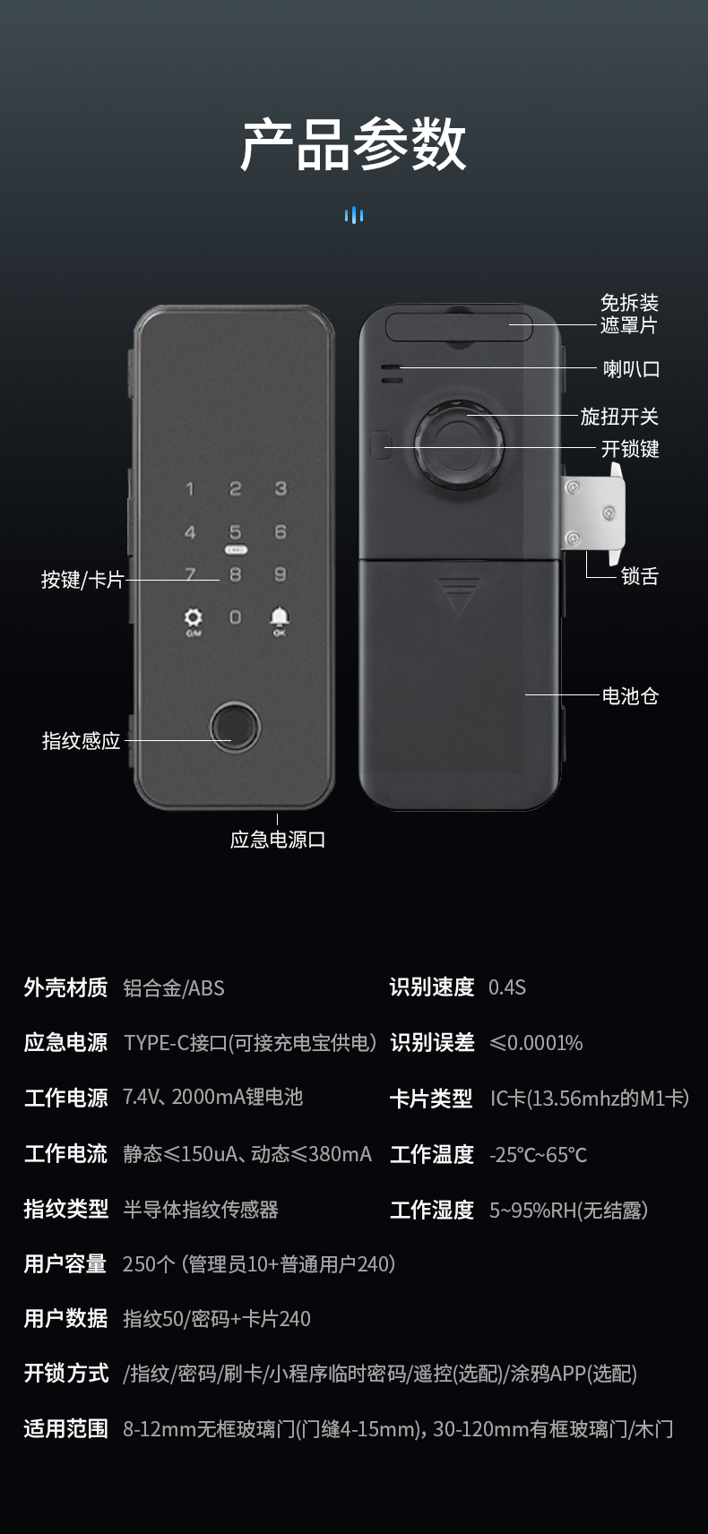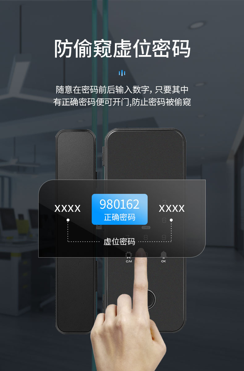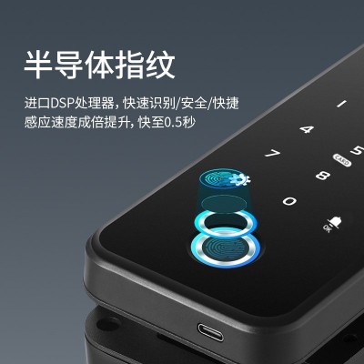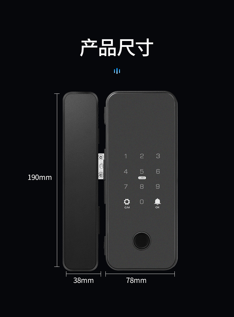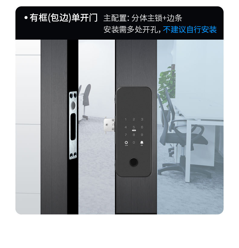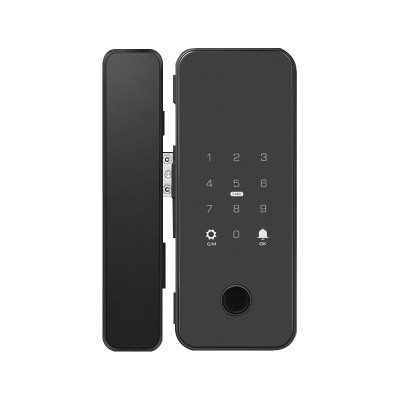 办公室玻璃门指纹锁家用免开孔单双开门密码锁带考勤玻璃门锁批发