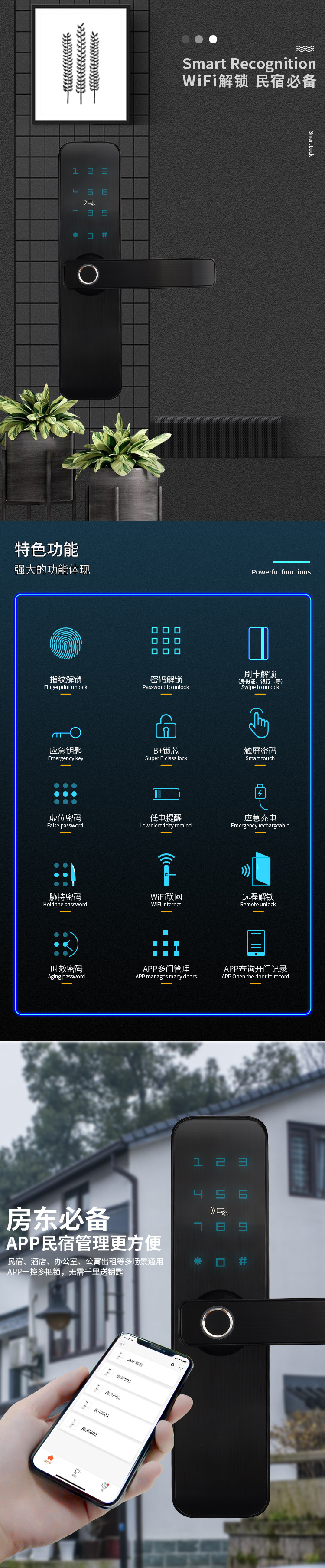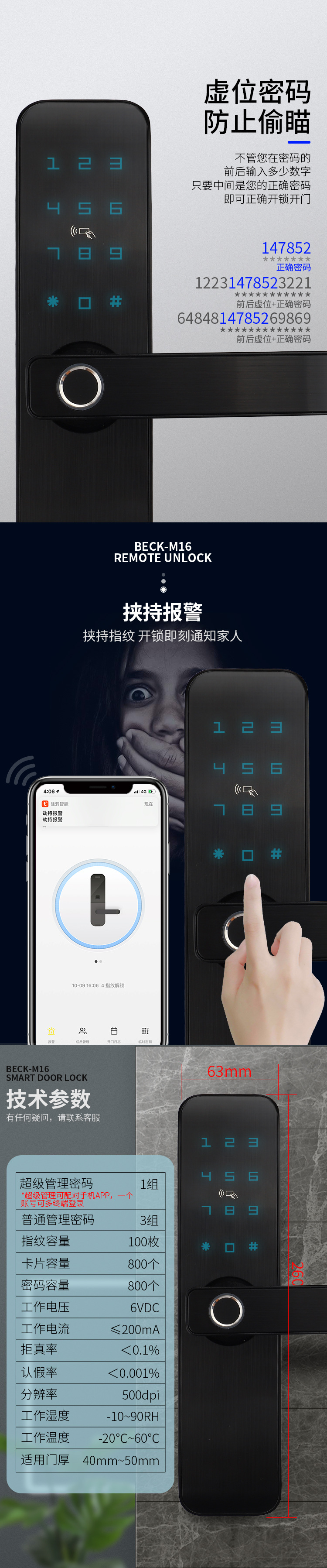 博克指纹锁涂鸦蓝牙出租屋房东锁公寓远程控制智能锁民宿刷卡M16B