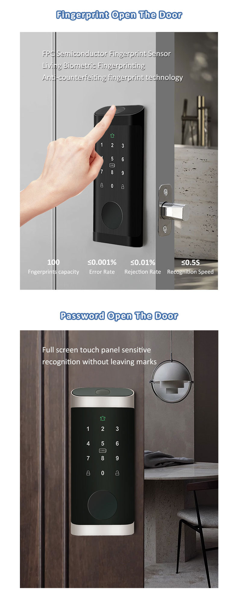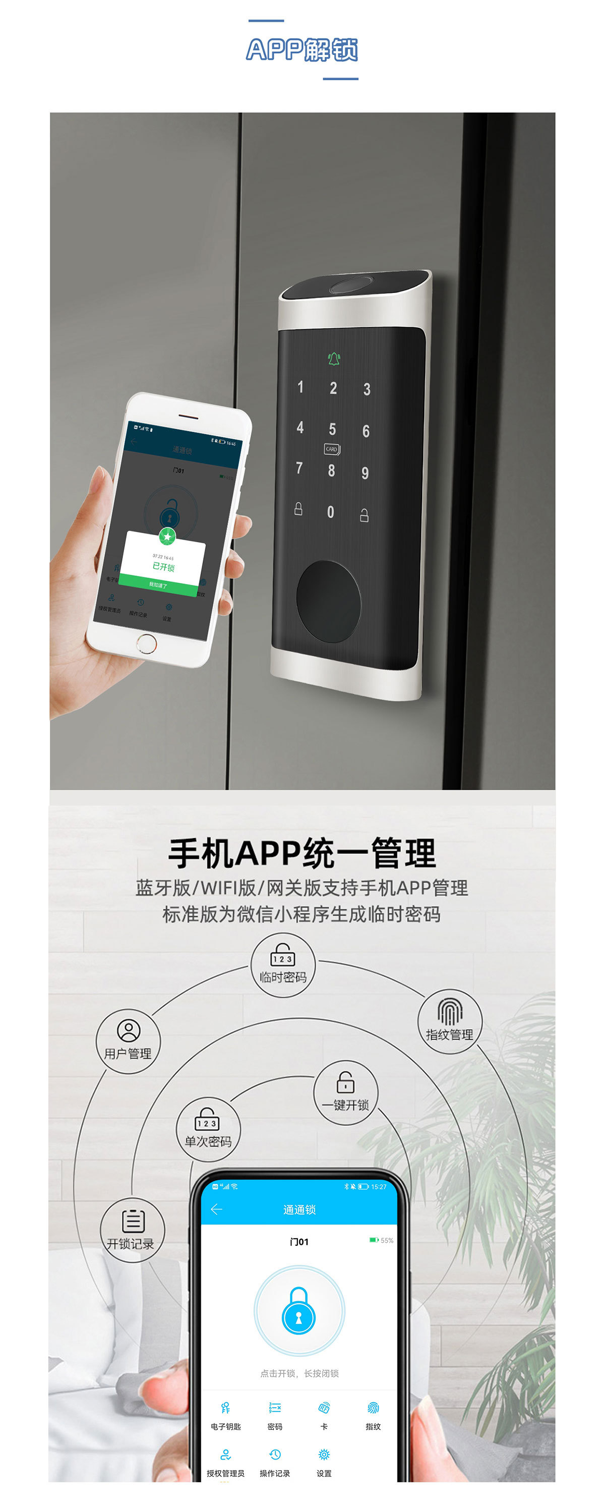 博克美版呆锁指纹锁密码磁卡涂鸦通通远程管理单舌智能锁欧美跨境