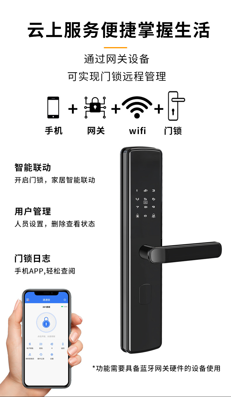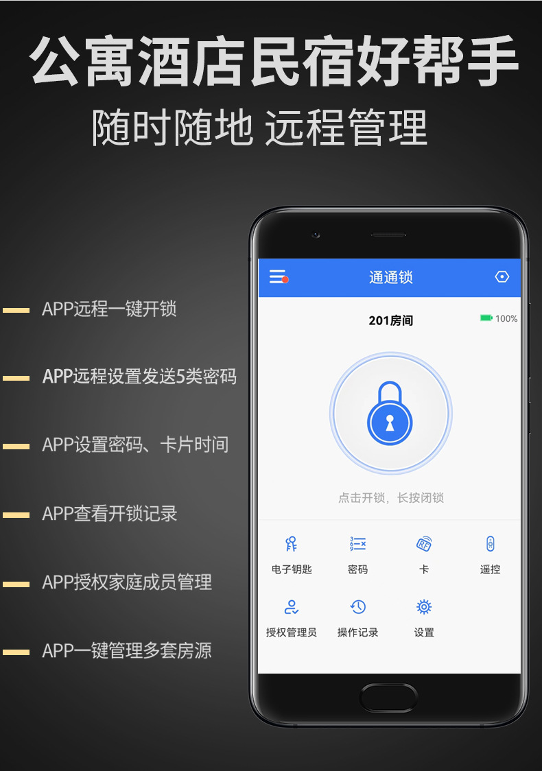 通通锁TTlock酒店管理系统公寓民宿密码锁免开孔电子锁密码锁