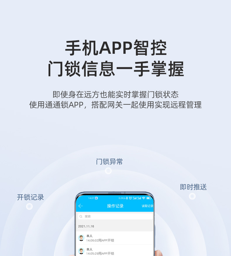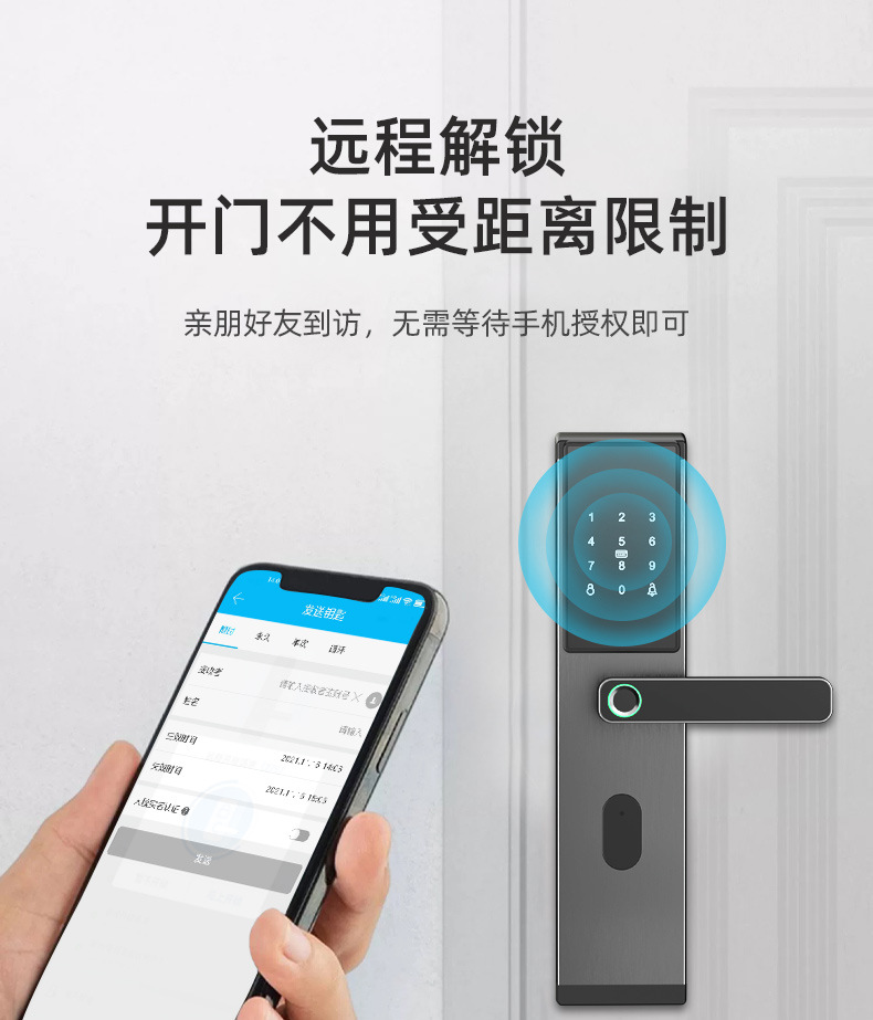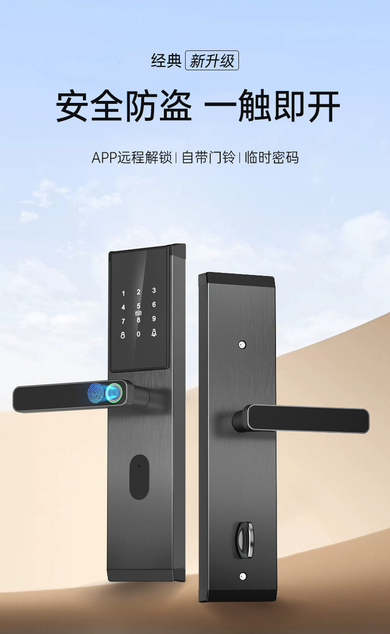 指纹锁一握开半自动智能锁出租房大门家用防盗电子锁远程管理通通
