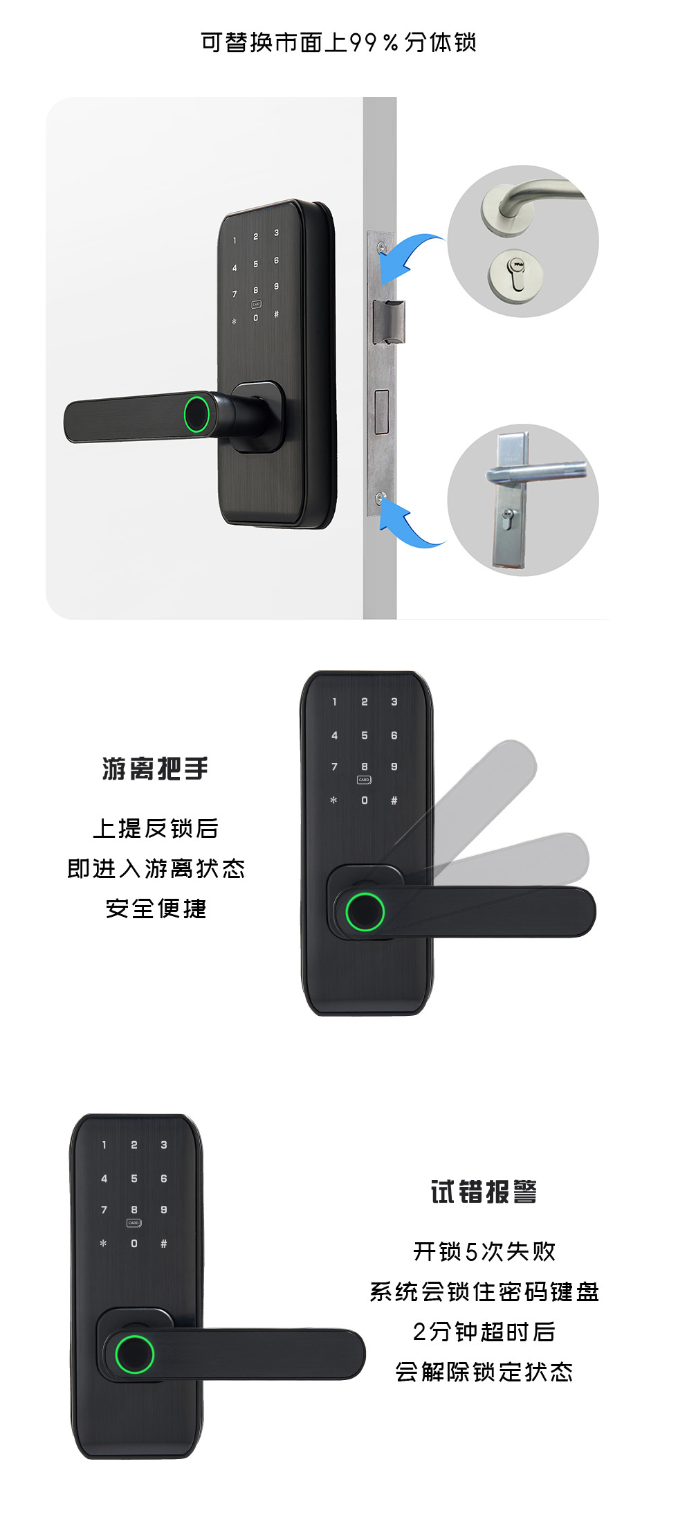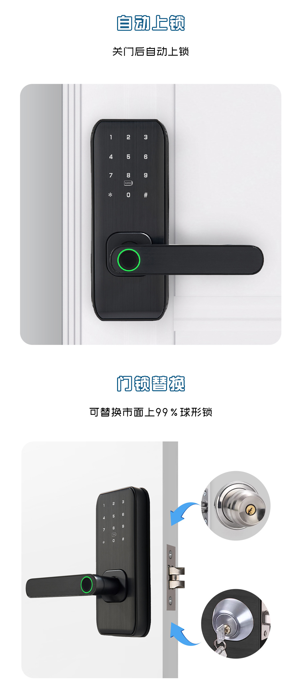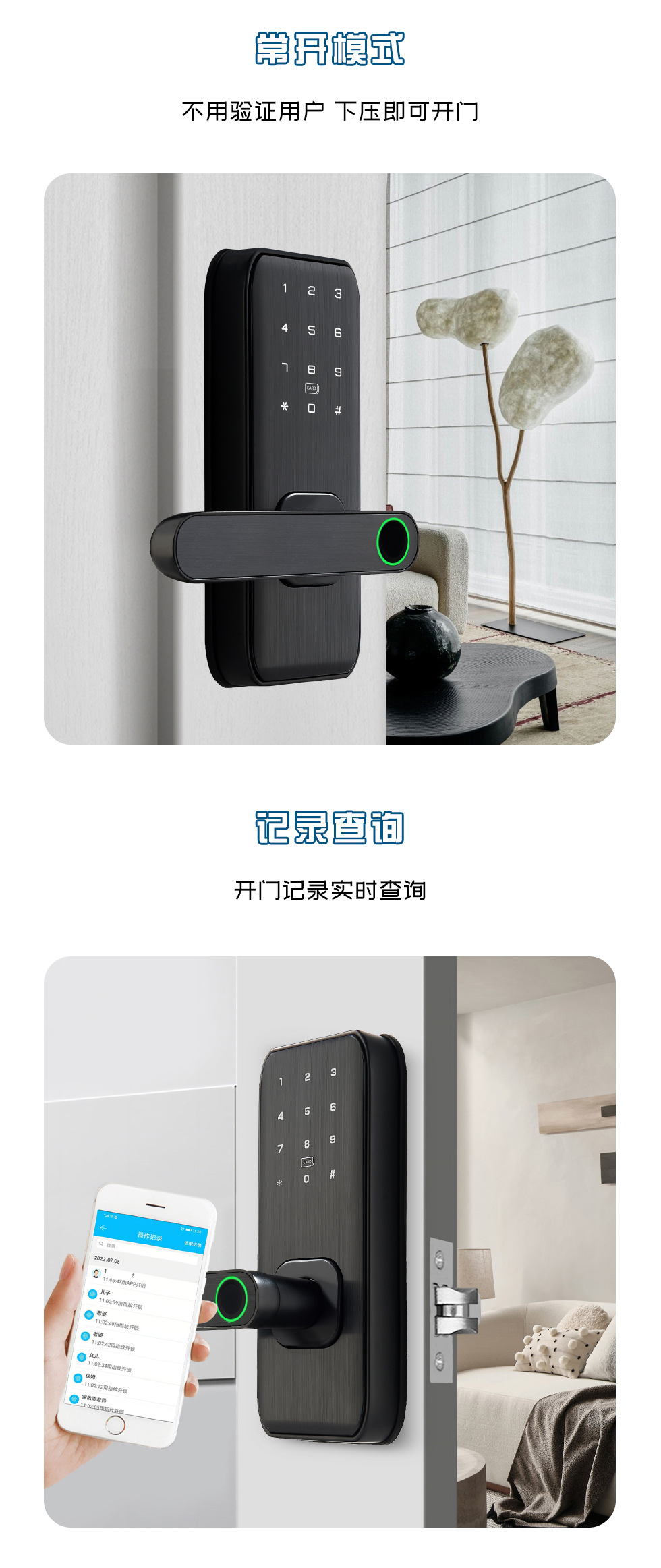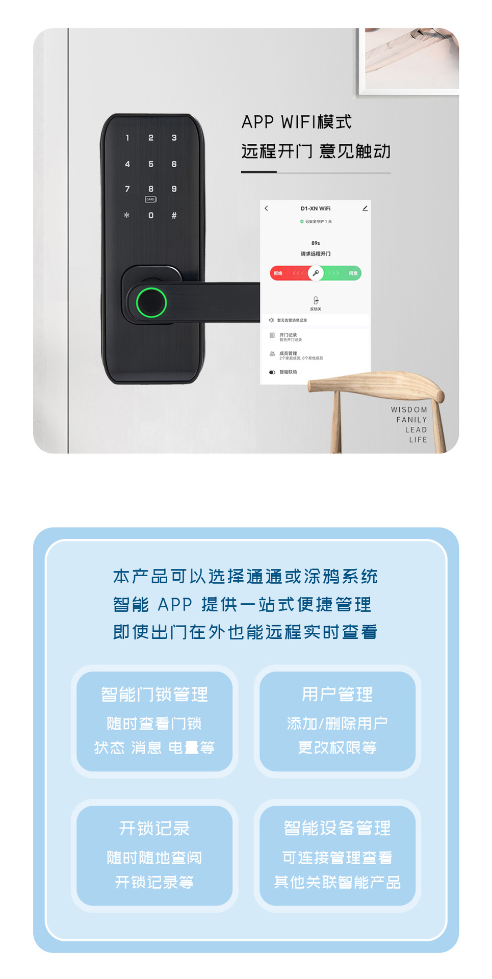 跨境智能指纹锁入户远程WiFi电子门锁通通APP指纹锁室内密码锁