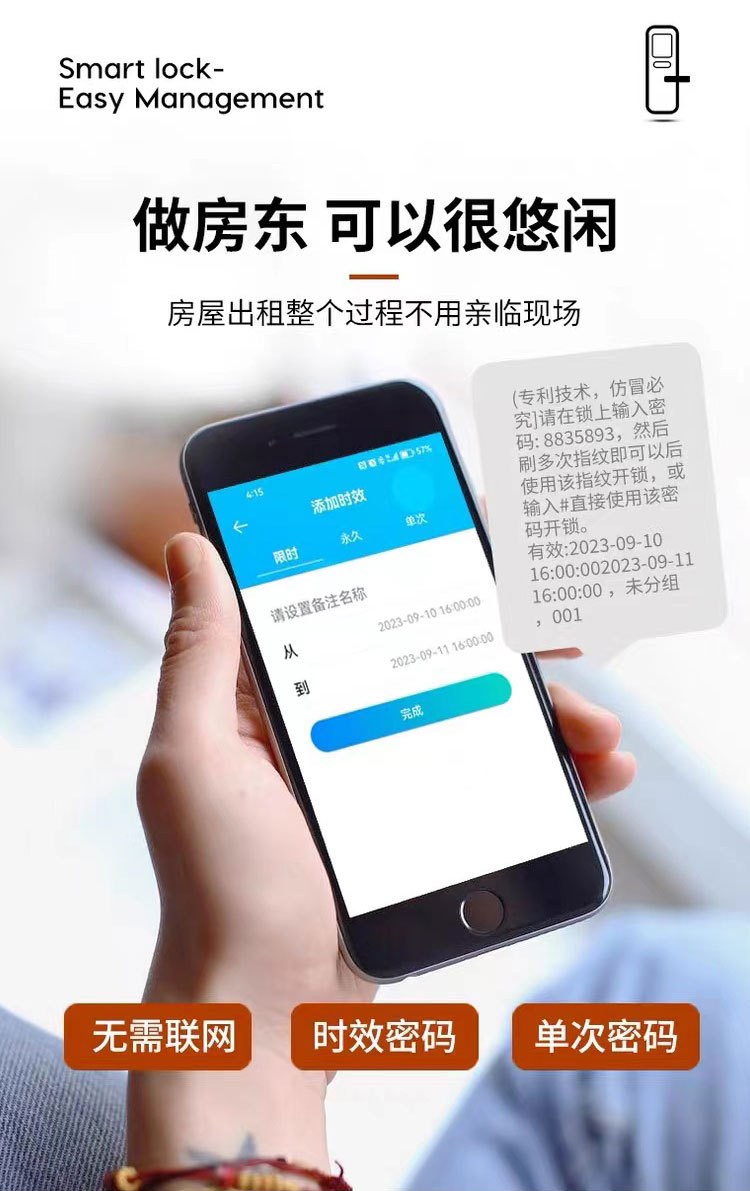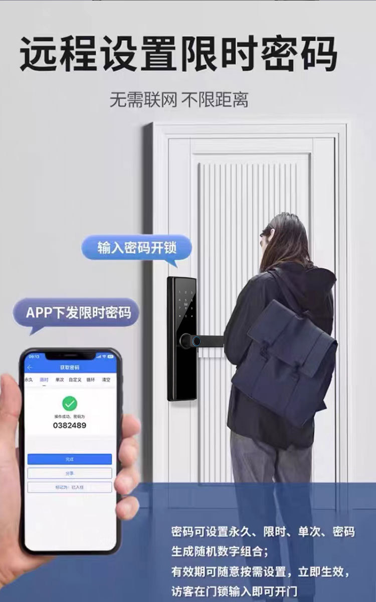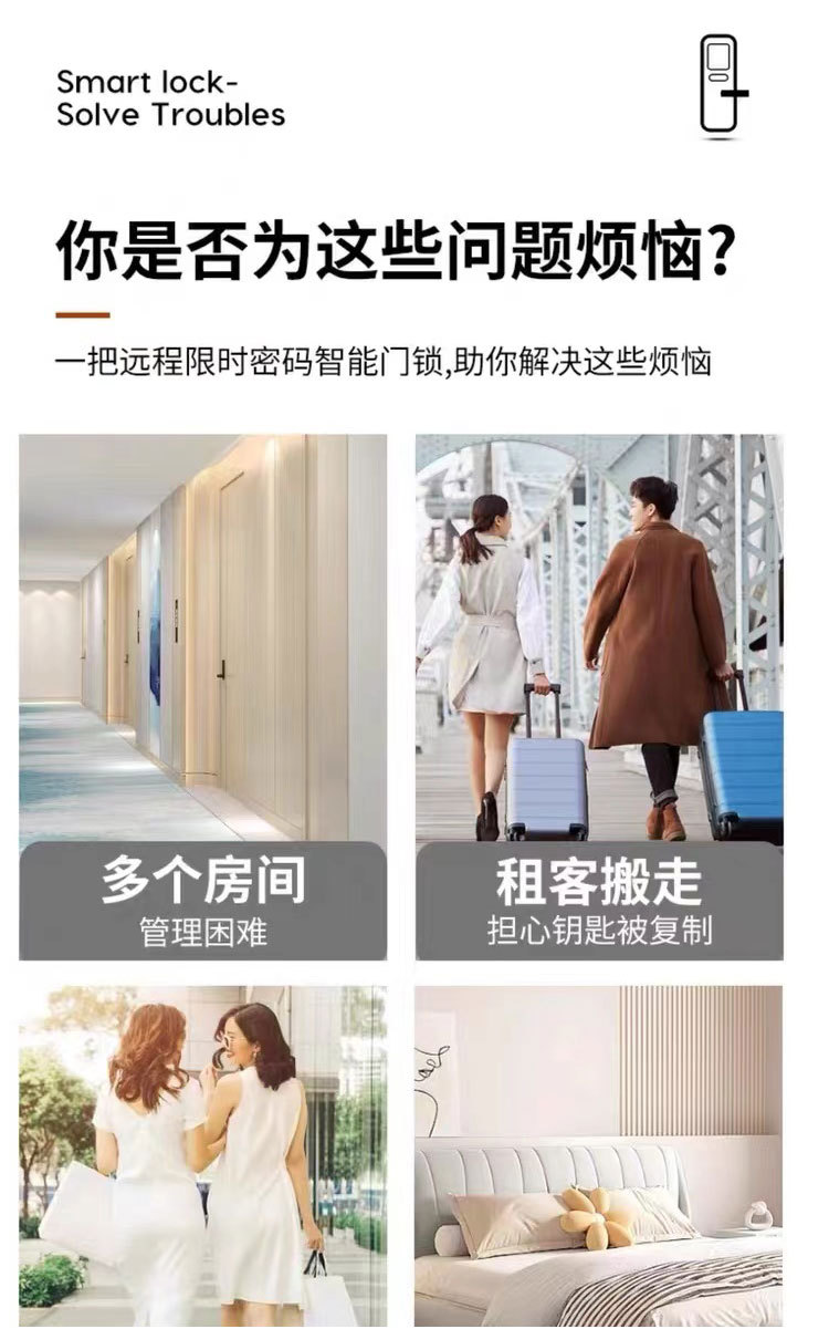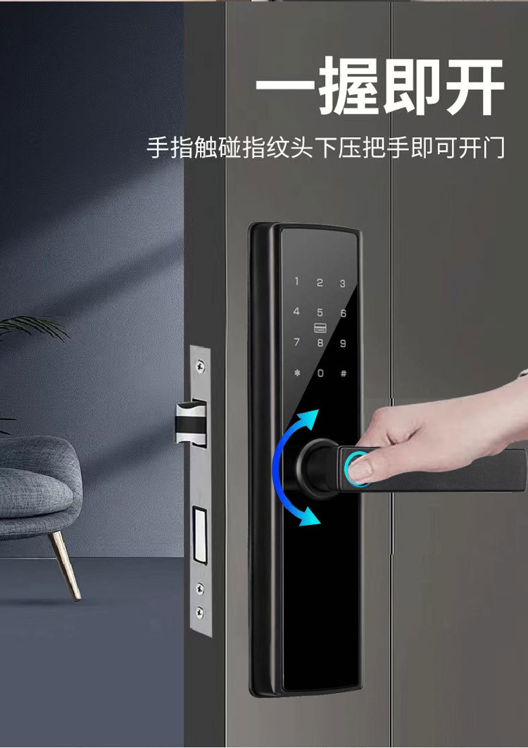 外贸跨境木门指纹锁家用民宿室内房间智能电子锁出租房远程密码锁