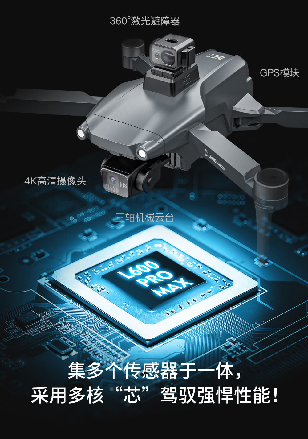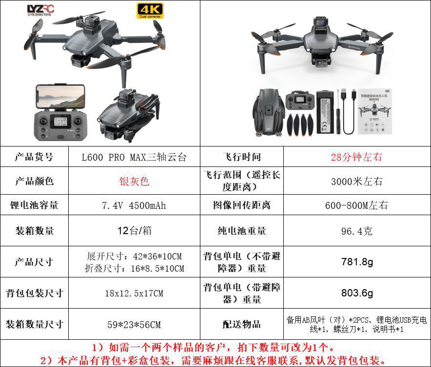 L600PRO三轴防抖云台GPS无刷避障无人机航拍四轴飞行器升级遥控