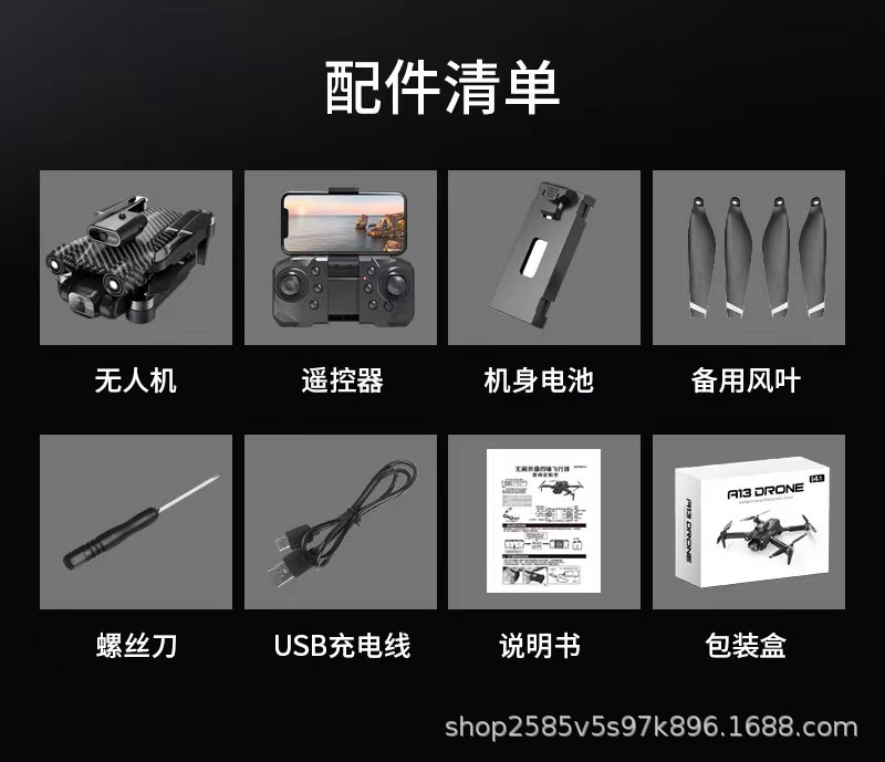 跨境无刷电机A13无人机新品高清航拍折叠四轴光流避障遥控飞机
