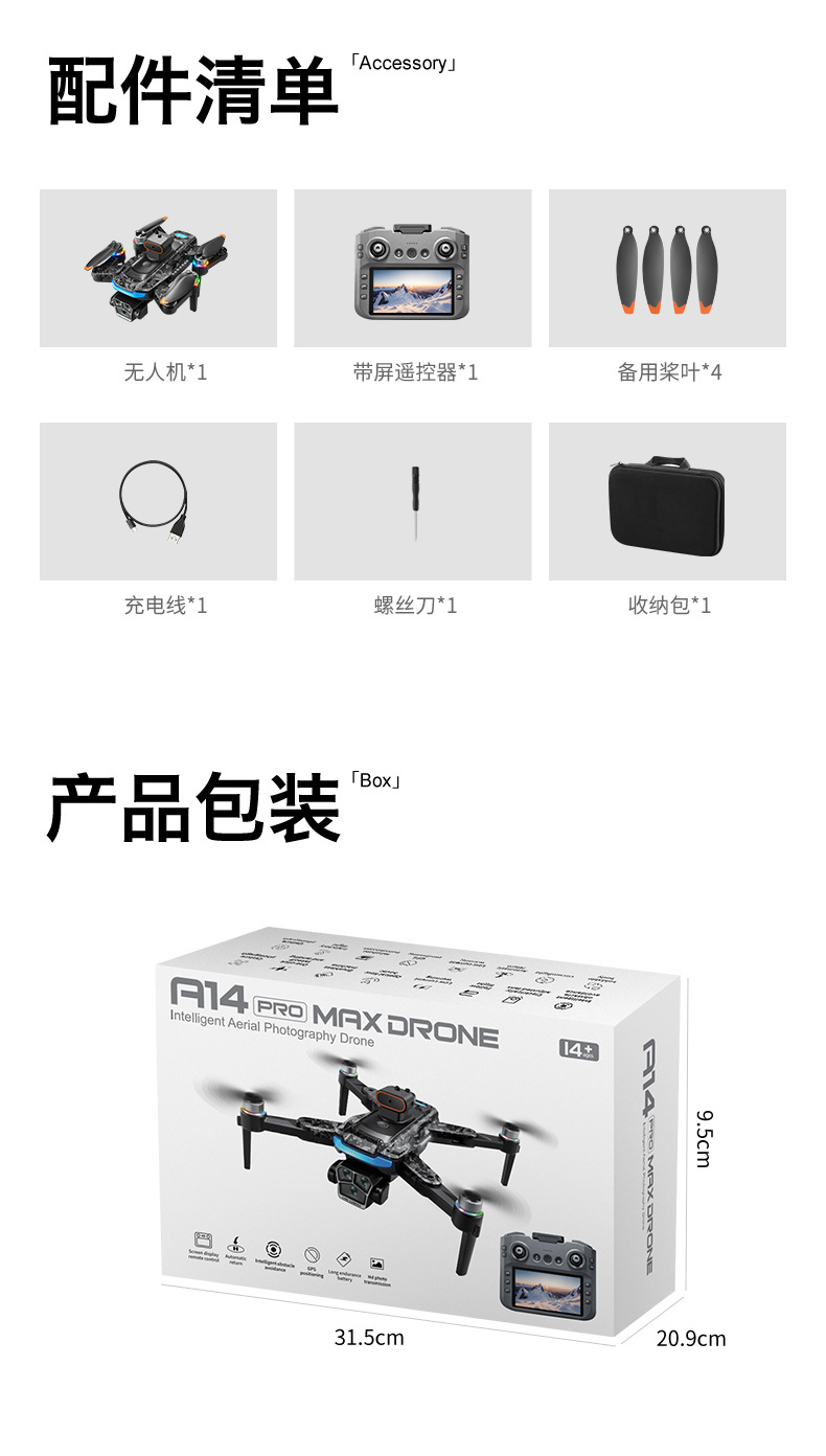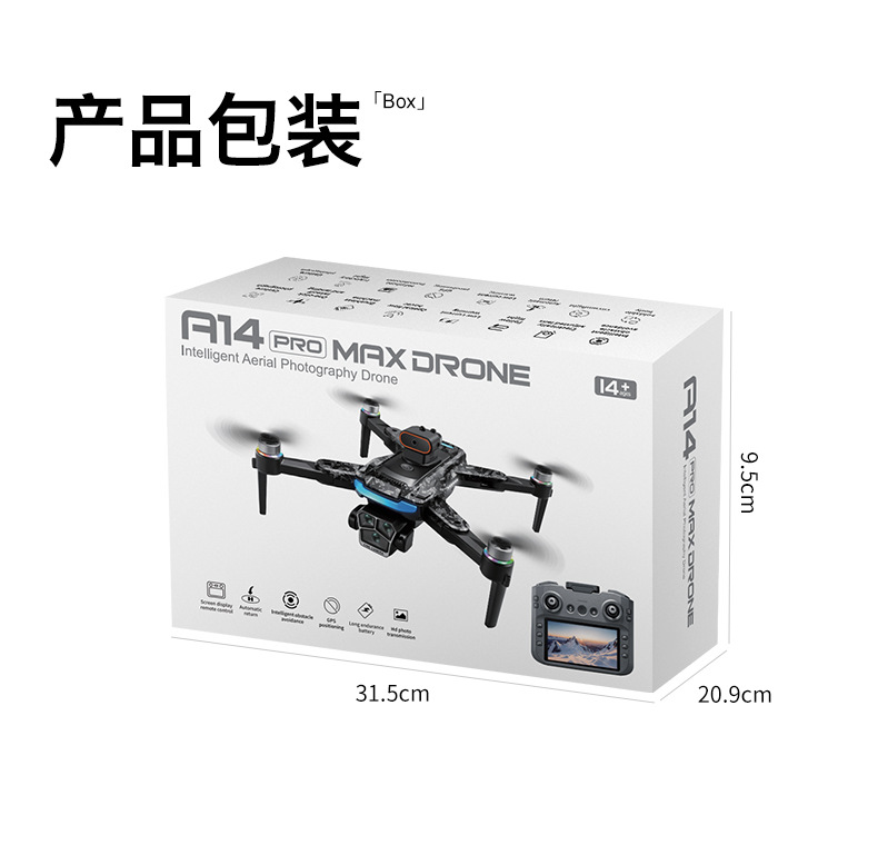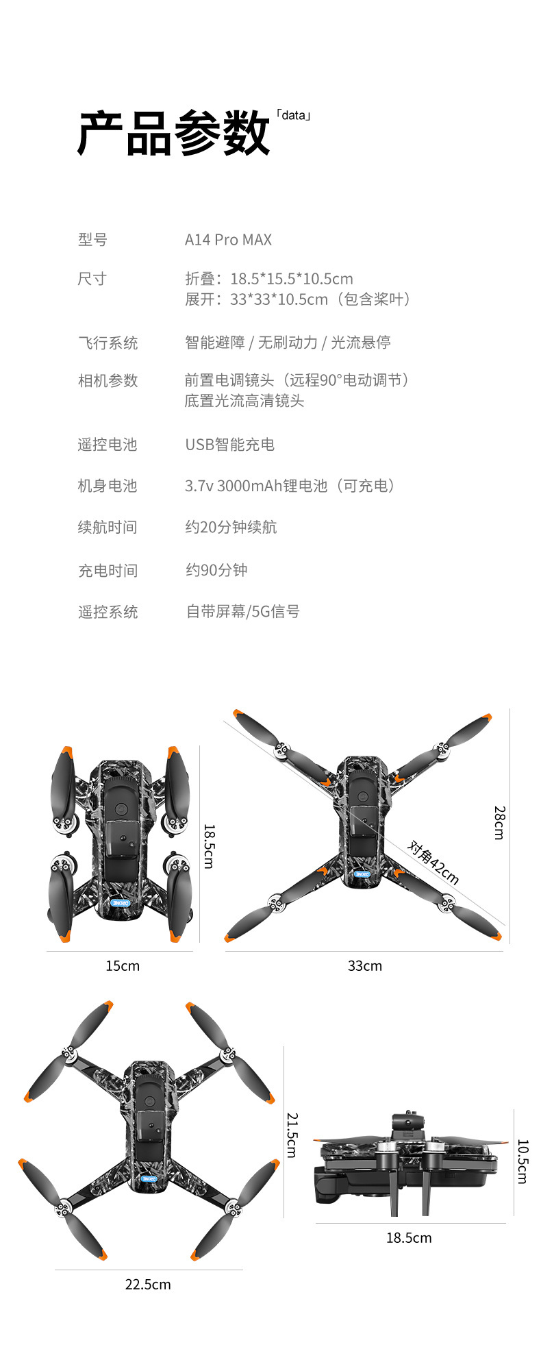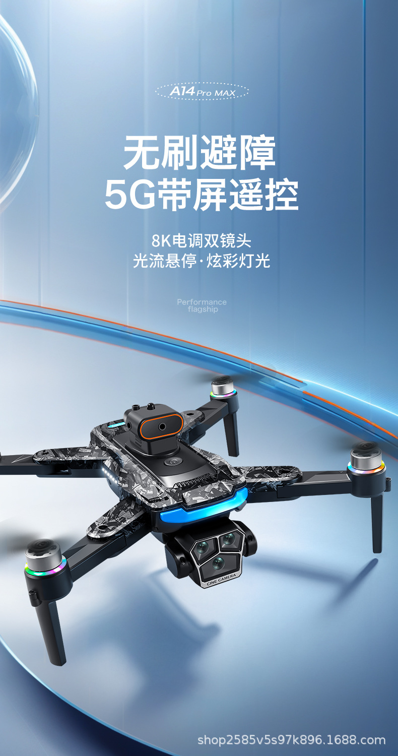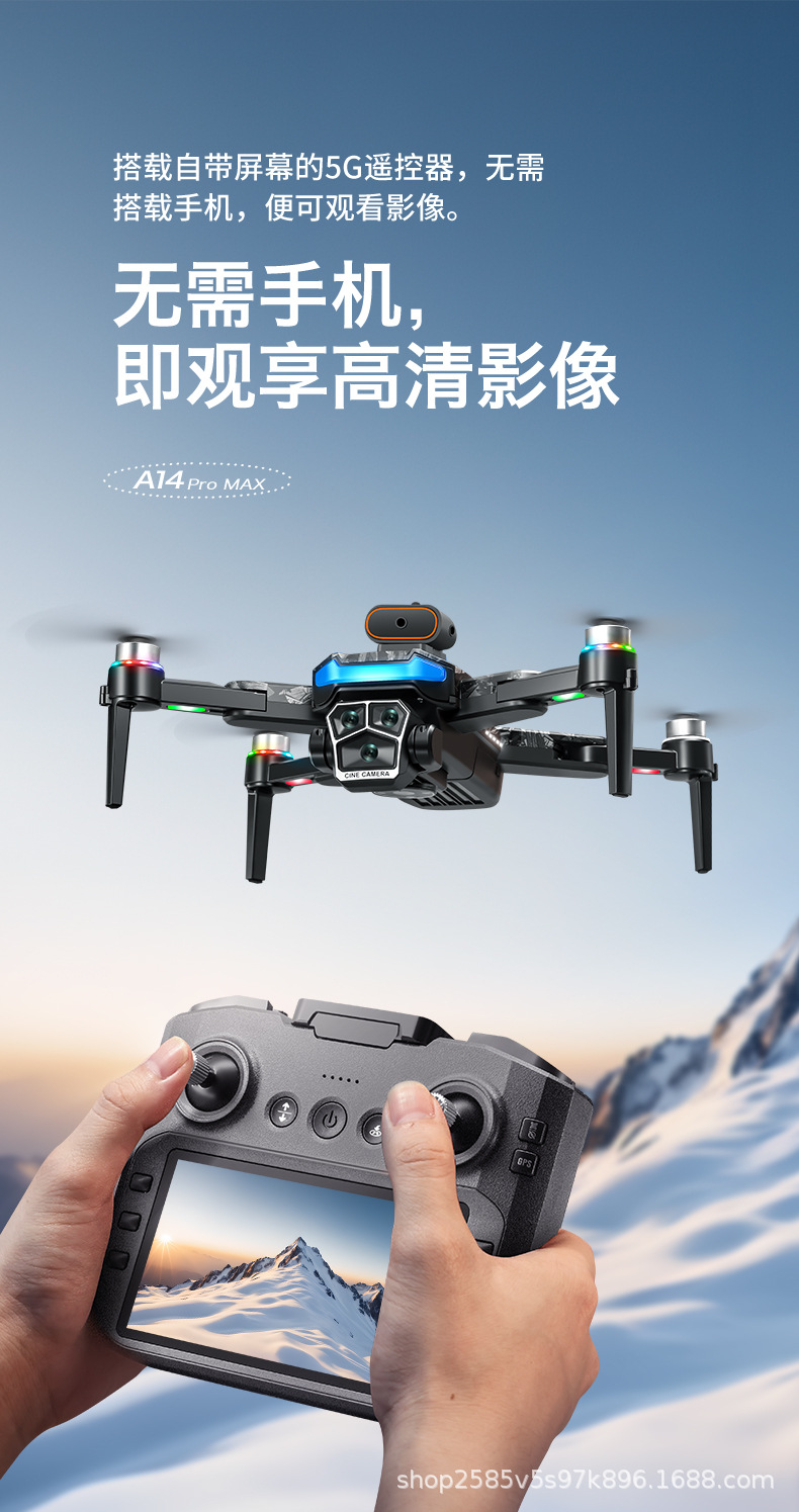 跨境无人机GPS自动返航A14无刷4.5寸带屏控智能避障光流高清航拍