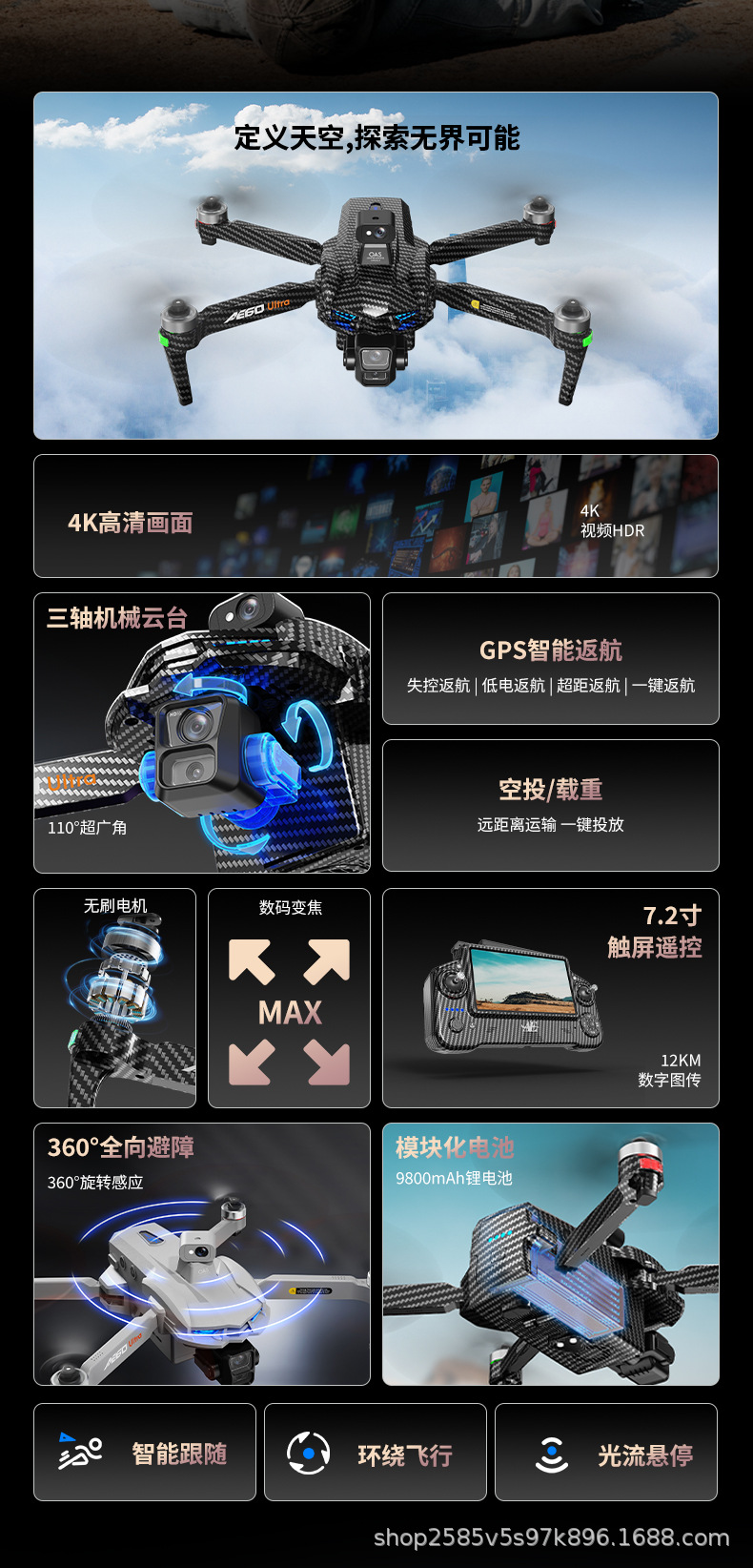 无人机带触屏AE60高清航拍数字图传空投自动返航GPS高级遥控飞机