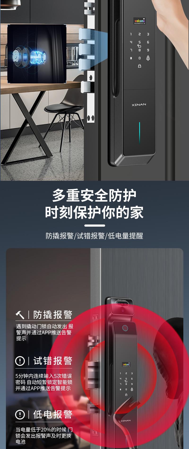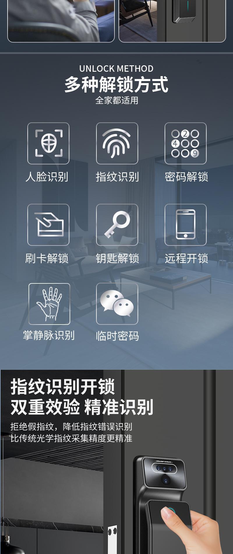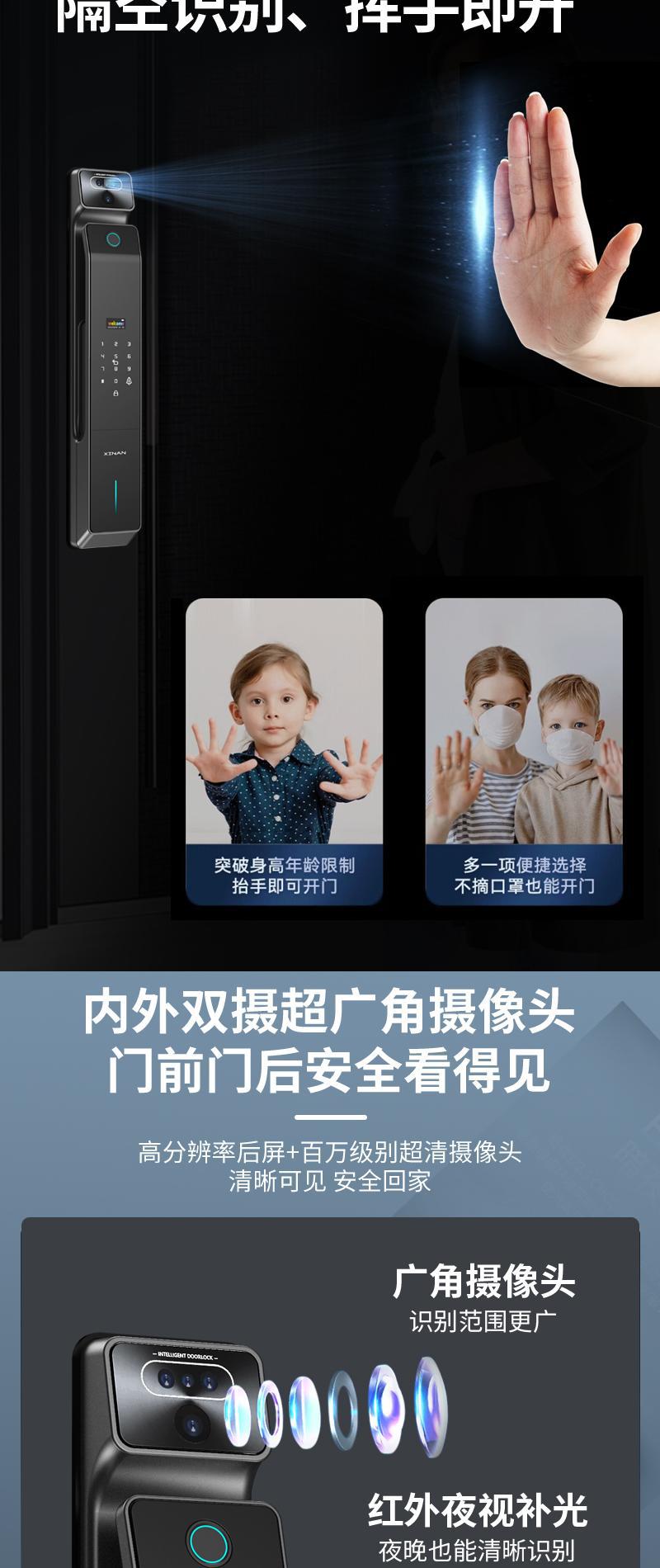 掌纹识别猫眼对讲6068防盗大门智能锁可视监控指纹双摄指纹锁门锁