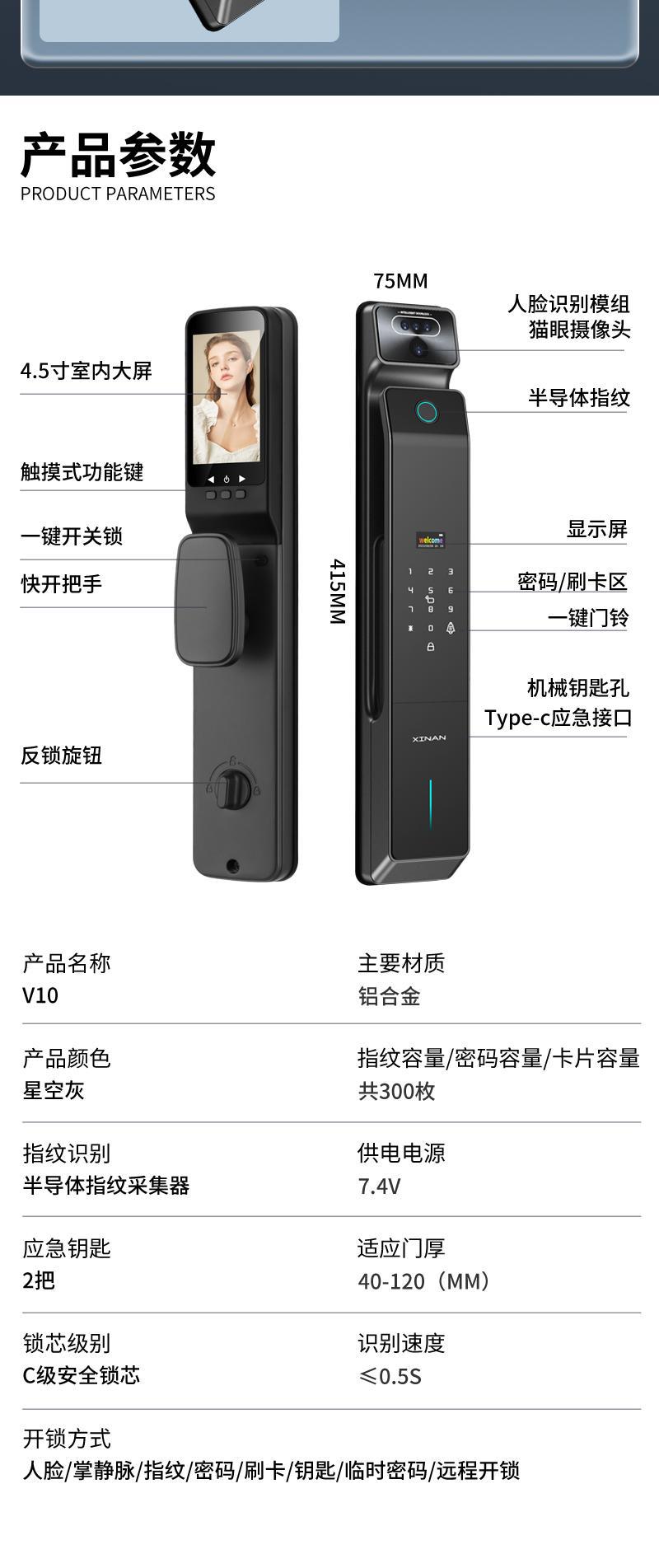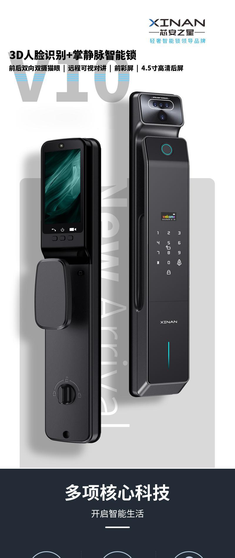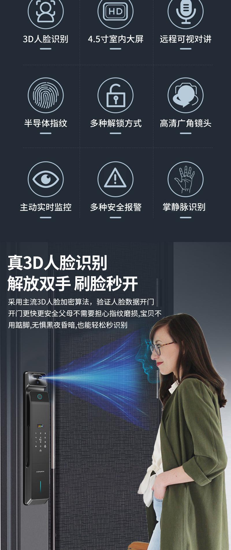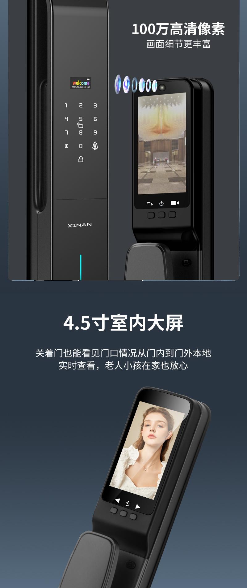 掌纹识别猫眼对讲6068防盗大门智能锁可视监控指纹双摄指纹锁门锁