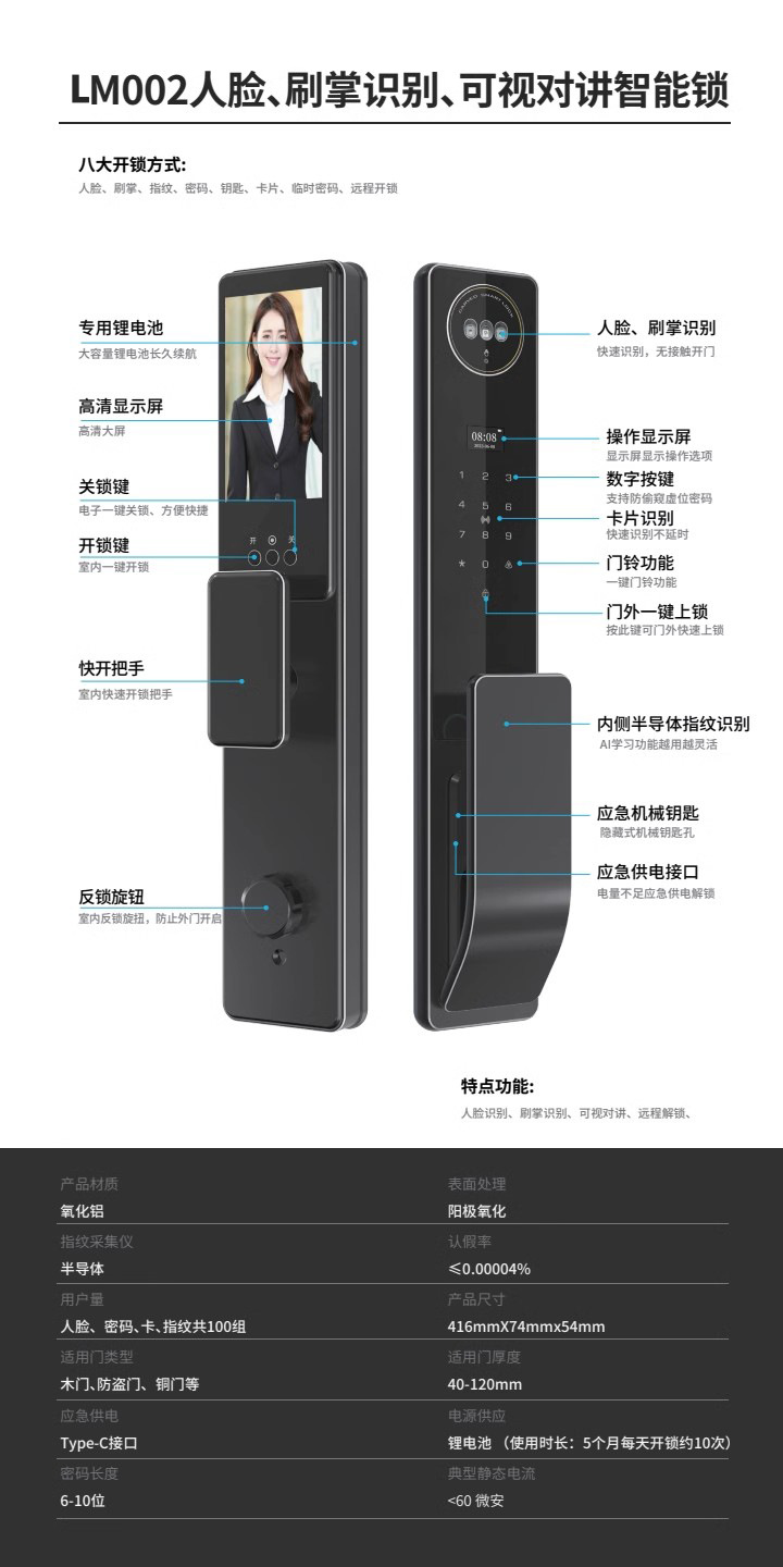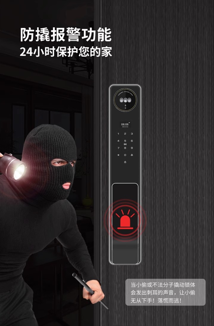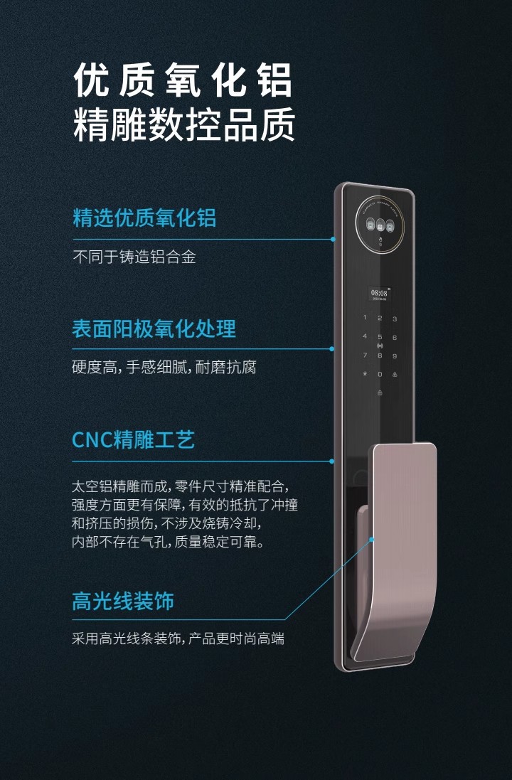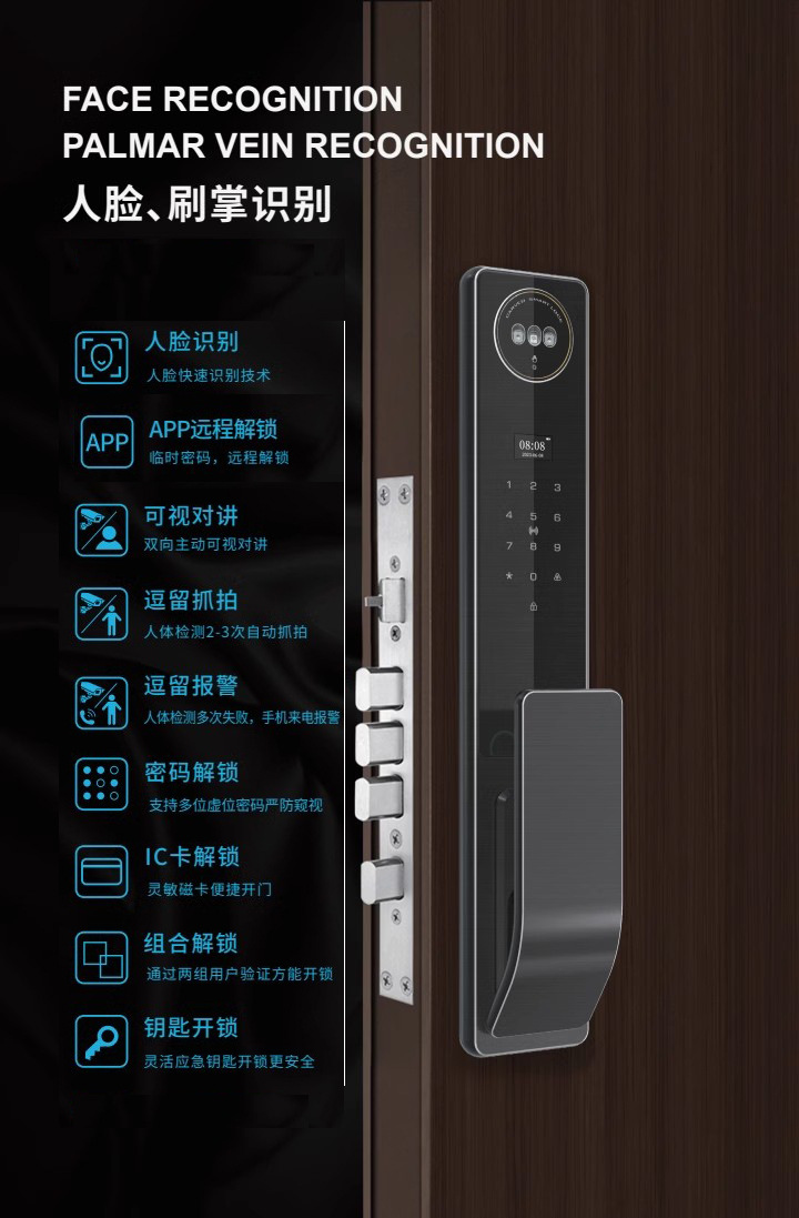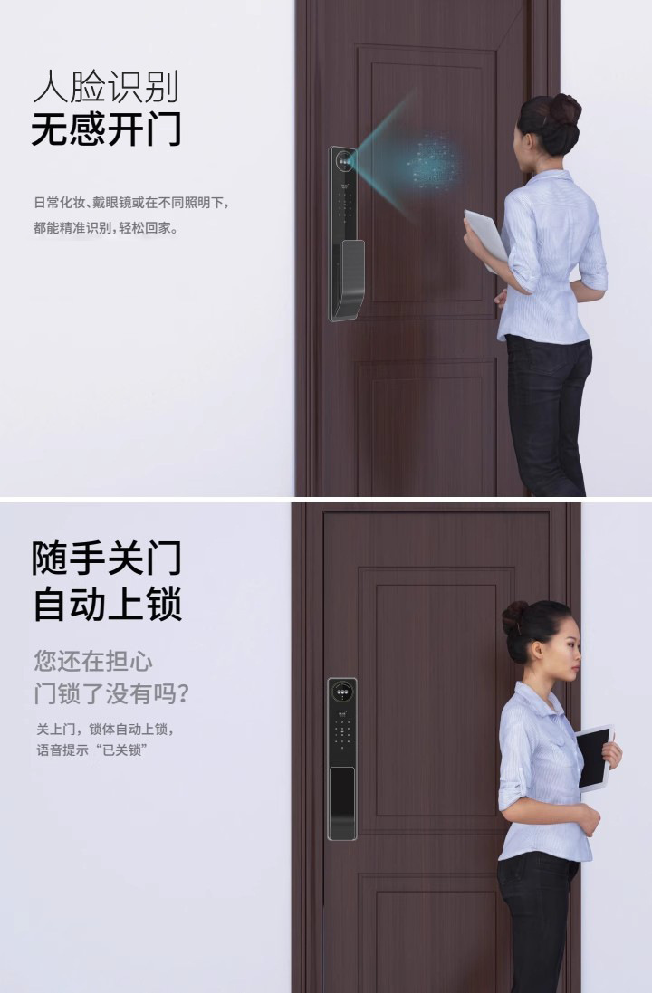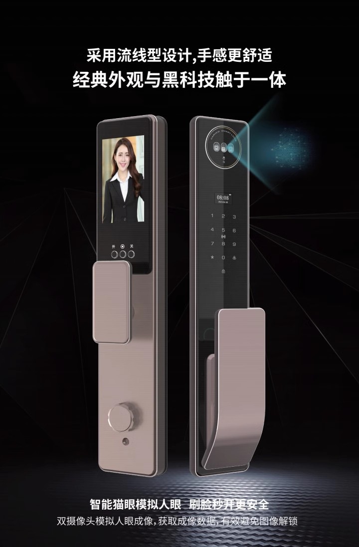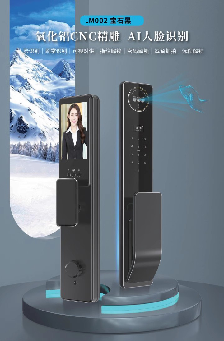 涂鸦精雕3D人脸识别锁全自动指纹密码报警智能锁可视对讲可视猫眼