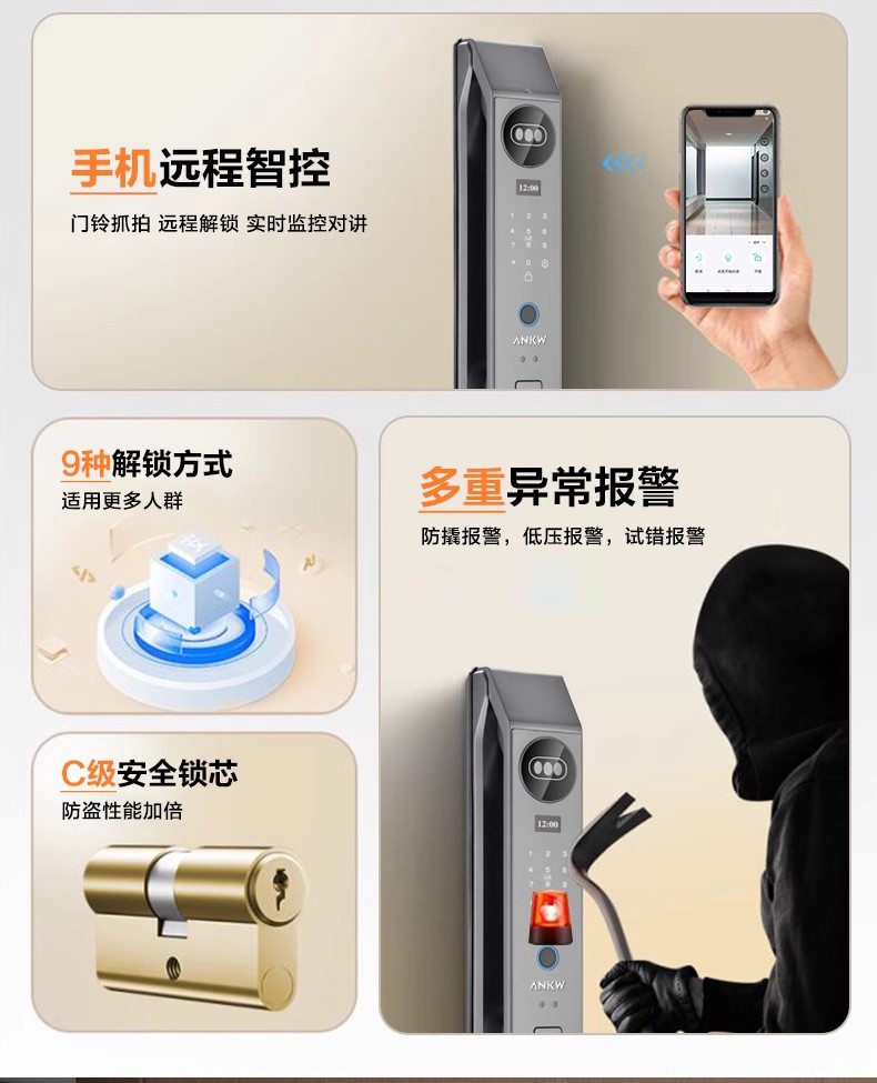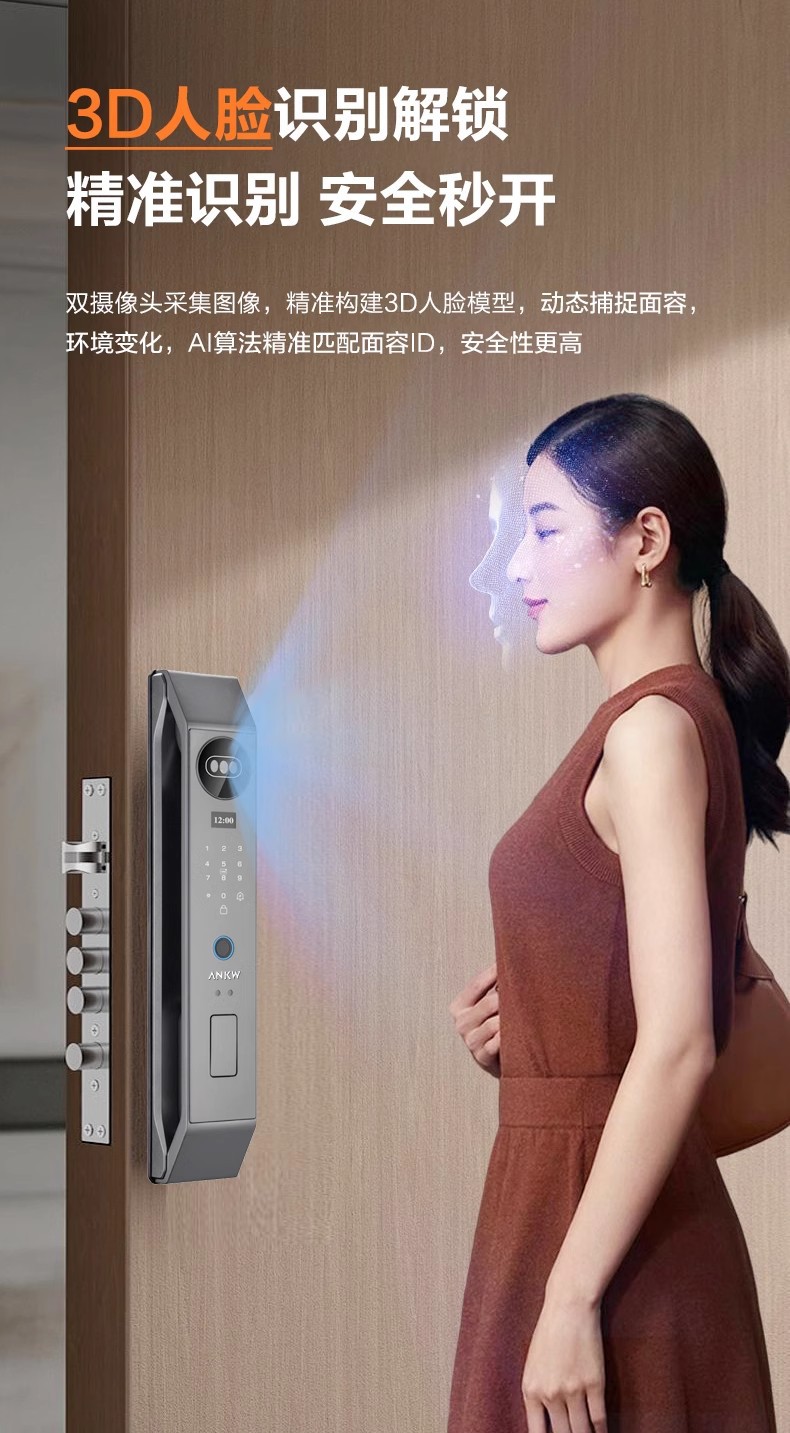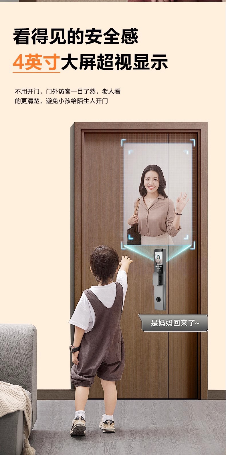 家用人脸识别防盗入户智能门锁全自动远程可视对讲指纹锁指纹解锁