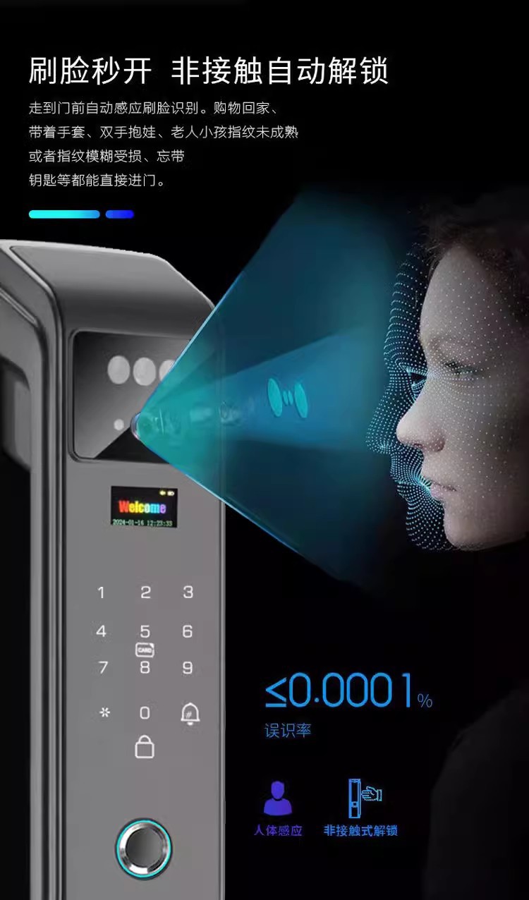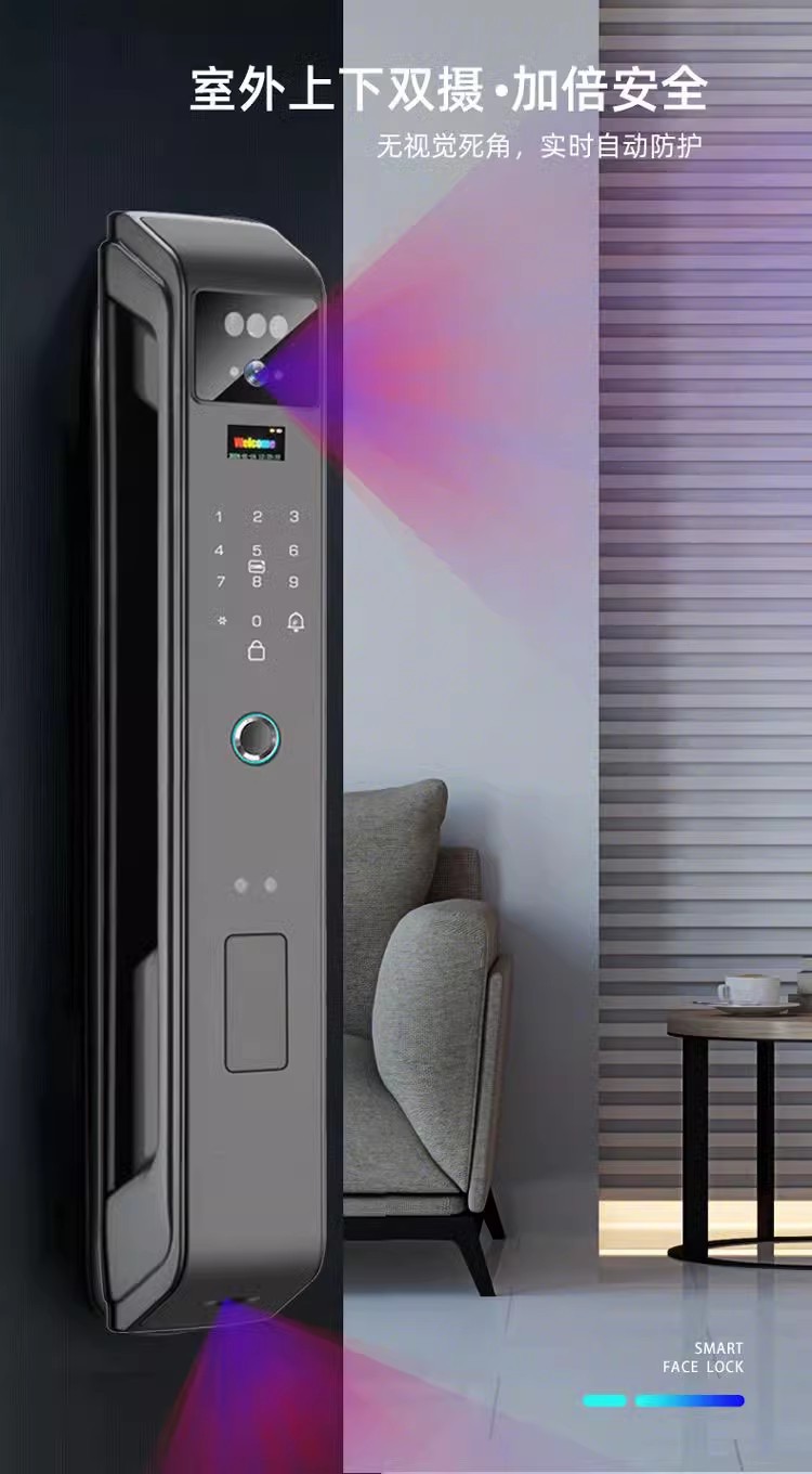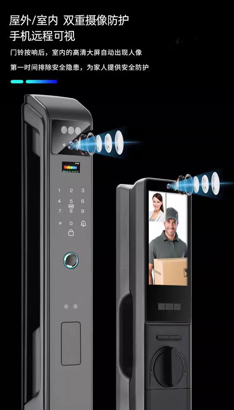 LS38三摄双电掌纹防控对讲人脸指纹密码智能锁指纹锁嵌入式电子锁