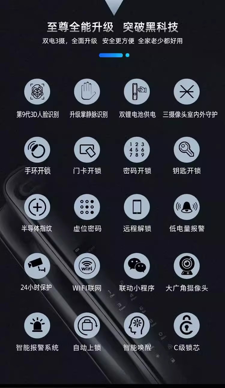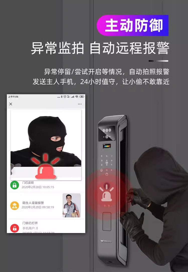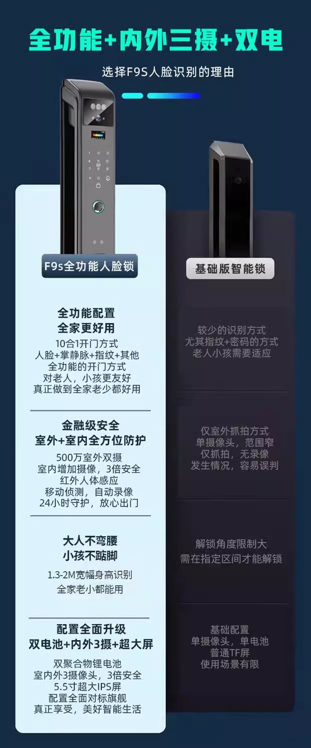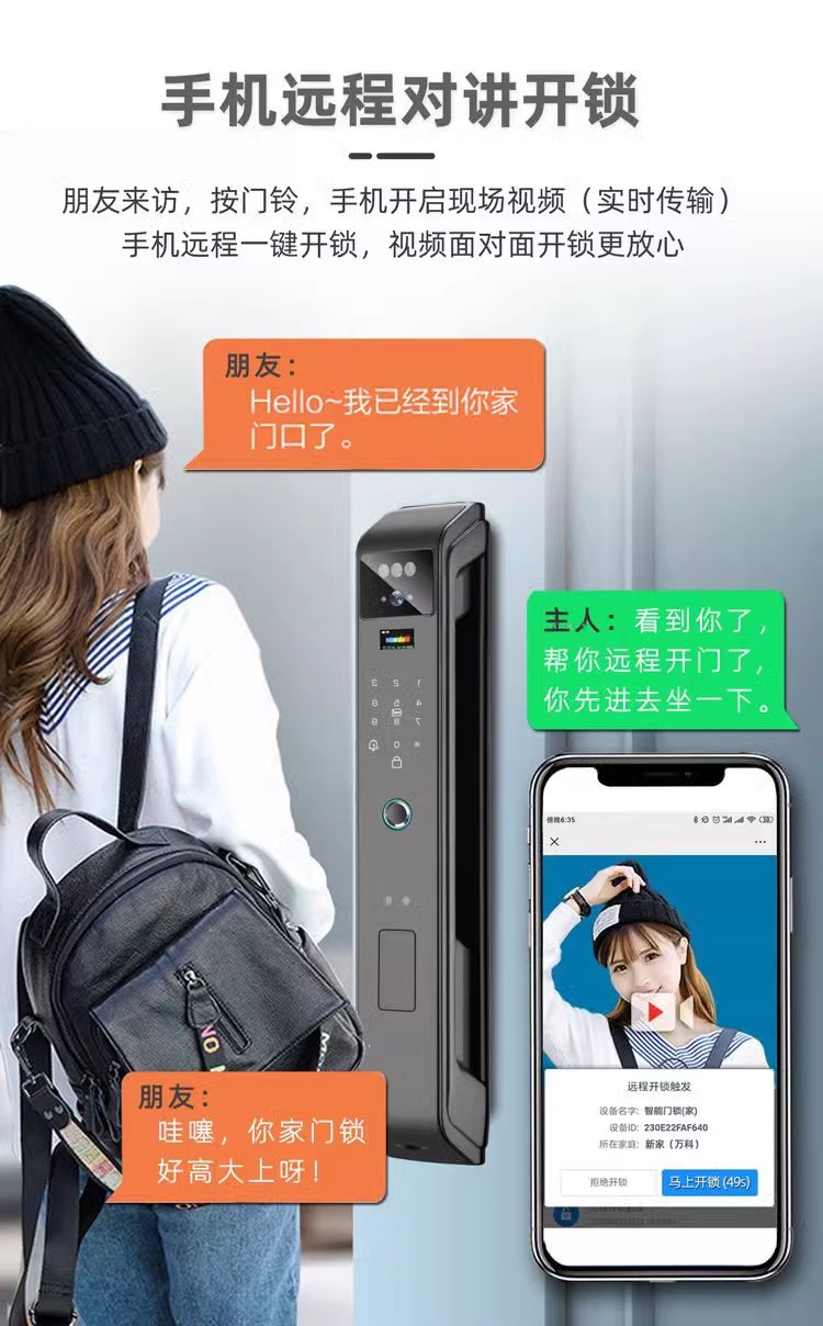 LS38三摄双电掌纹防控对讲人脸指纹密码智能锁指纹锁嵌入式电子锁