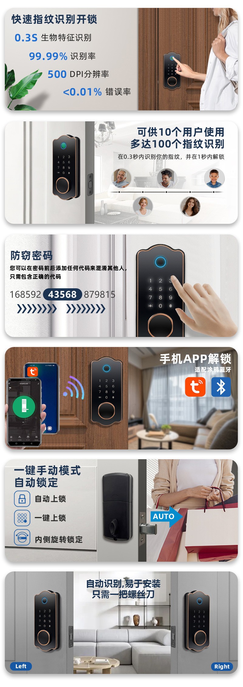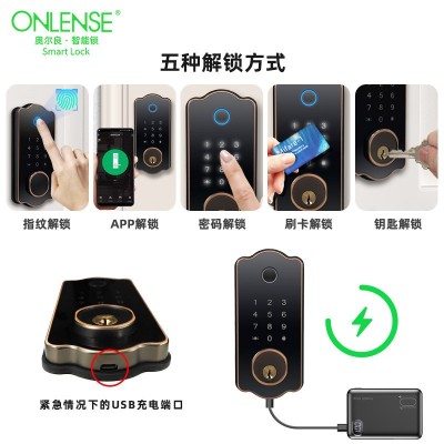 卧室指纹锁密码锁跨境电商北美专供tuya通通锁厂家直销智能门锁