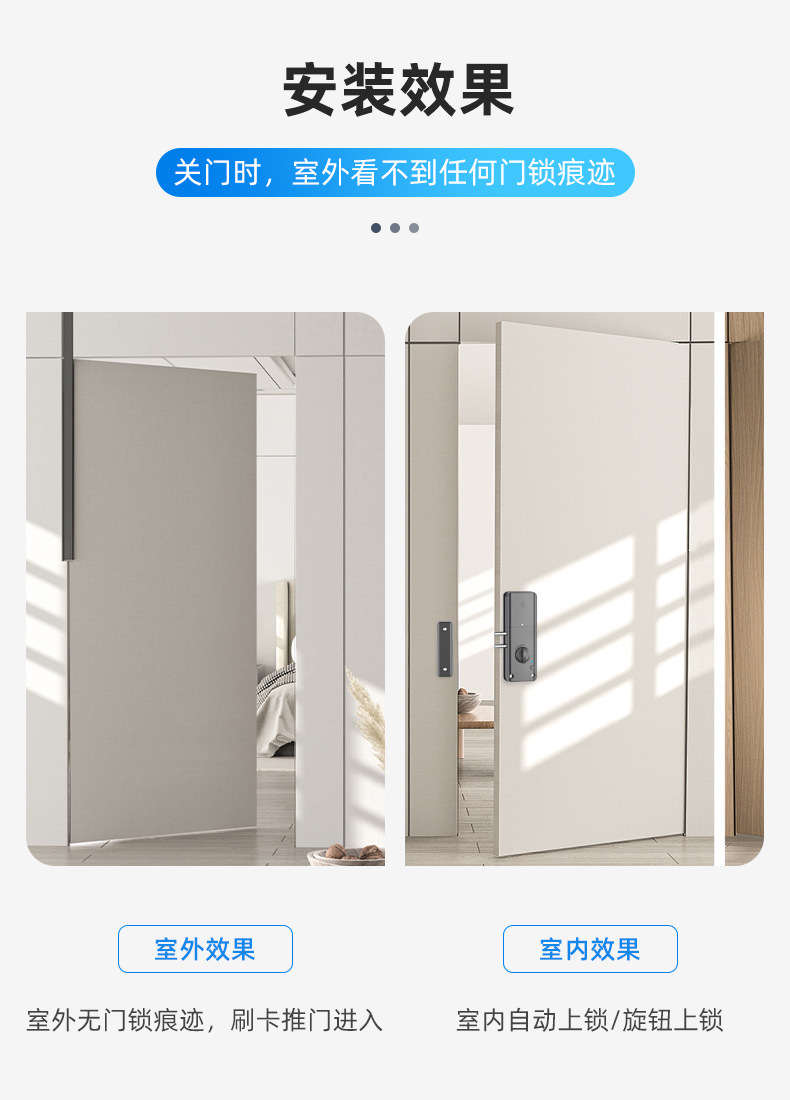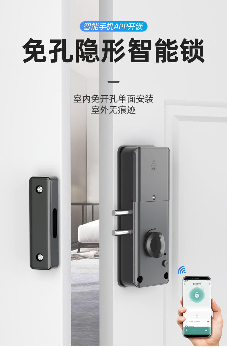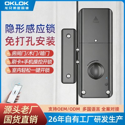 免打孔门锁智能锁室内门电子刷卡免开孔家用房间木门隐形感应门锁