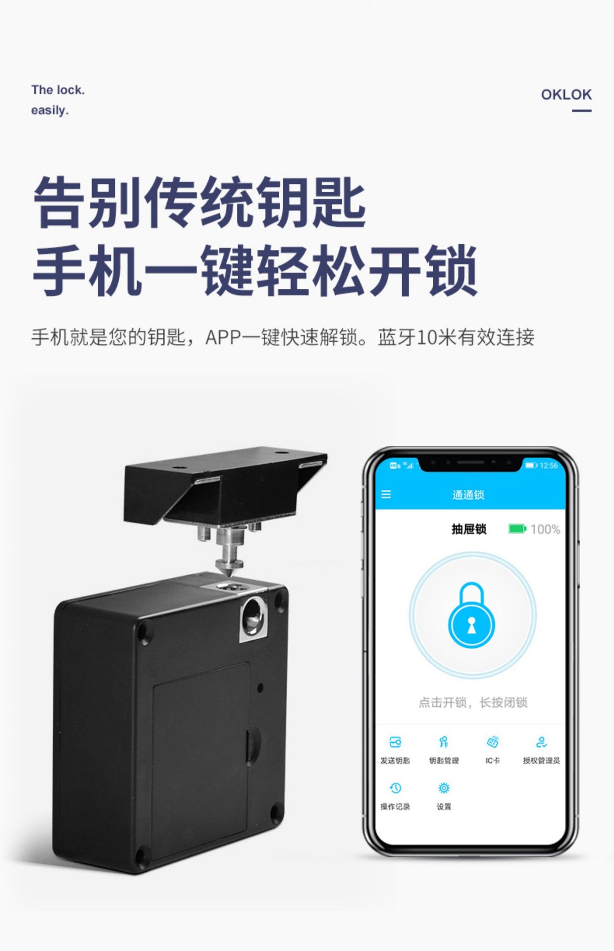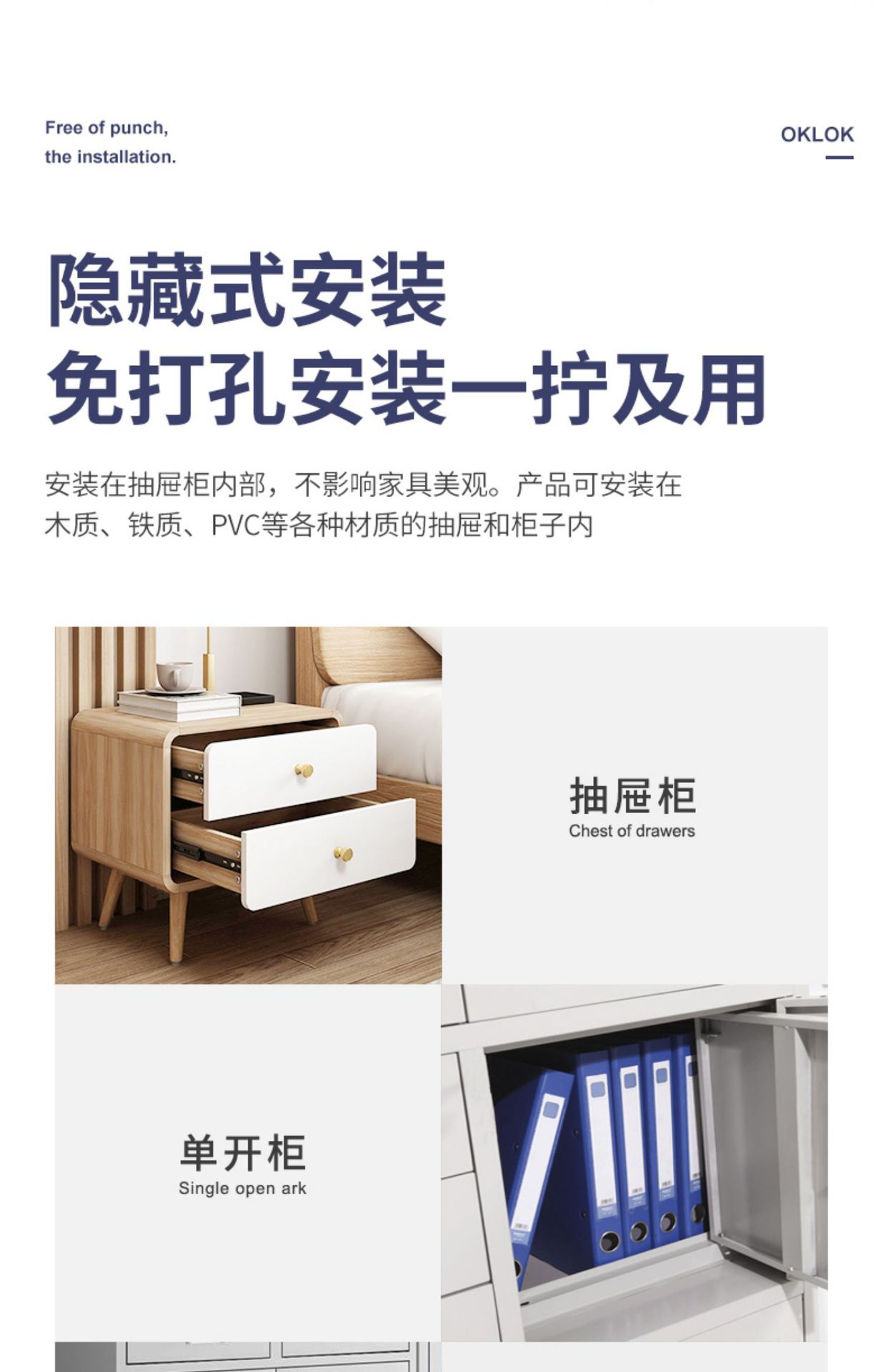 13抽屉锁免开孔鞋柜门衣柜子智能密码电子感应锁家用隐形暗锁文件