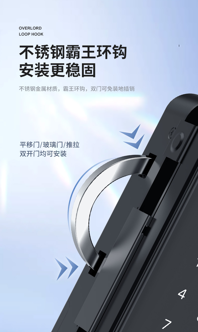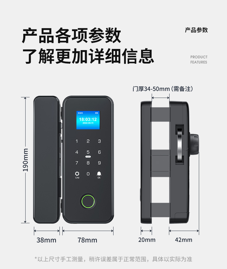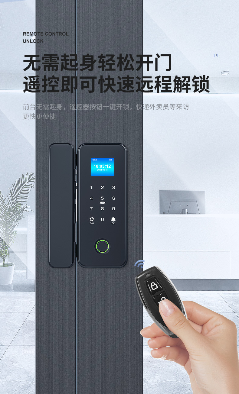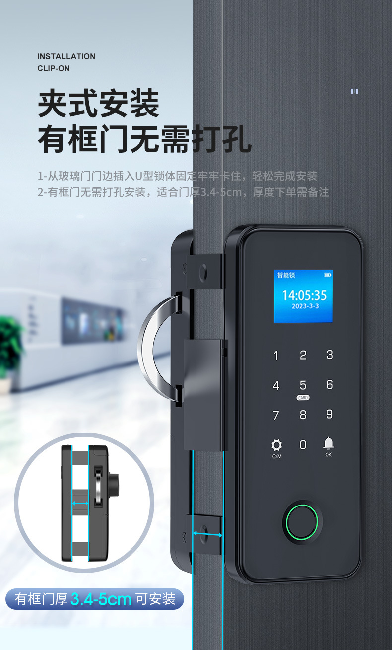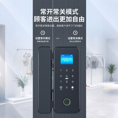 有框玻璃门指纹锁带框铝合金门密码锁免开孔单开双门办公室智能锁