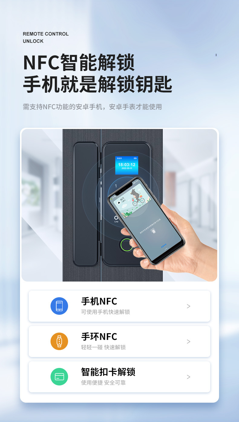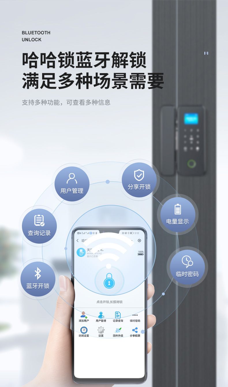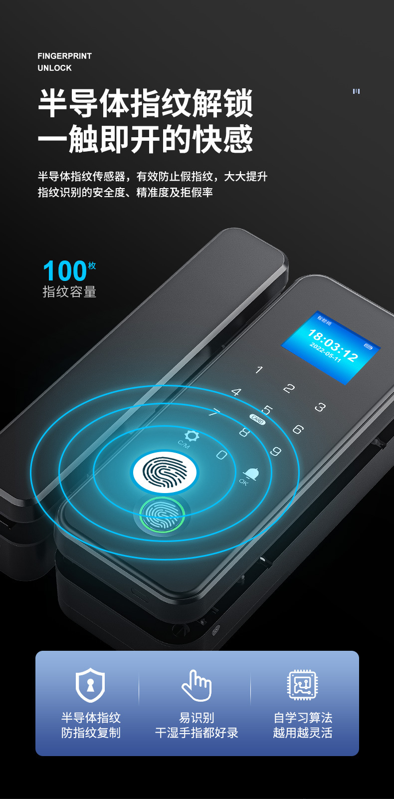 有框玻璃门指纹锁带框铝合金门密码锁免开孔单开双门办公室智能锁
