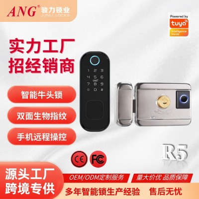 外贸密码锁智能牛头锁双面指纹外装门锁铁门智能锁电子门锁指纹锁