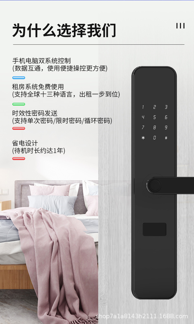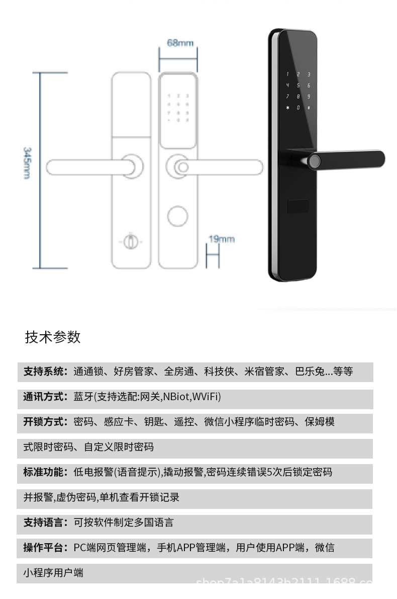 通通锁防盗门远程涂鸦WiF多国语言i刷卡密码指纹锁民宿公寓智能锁