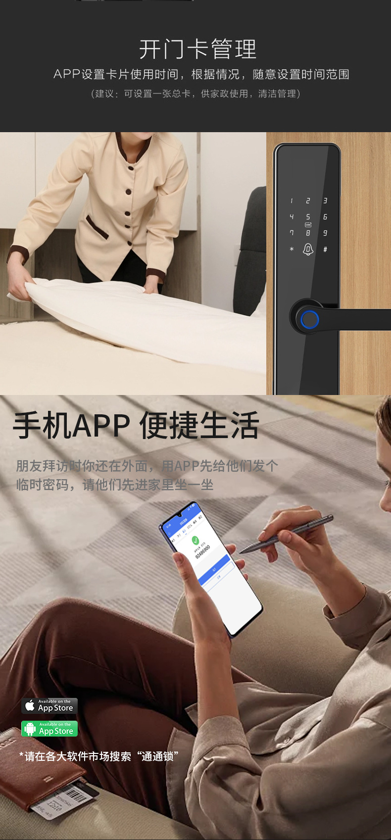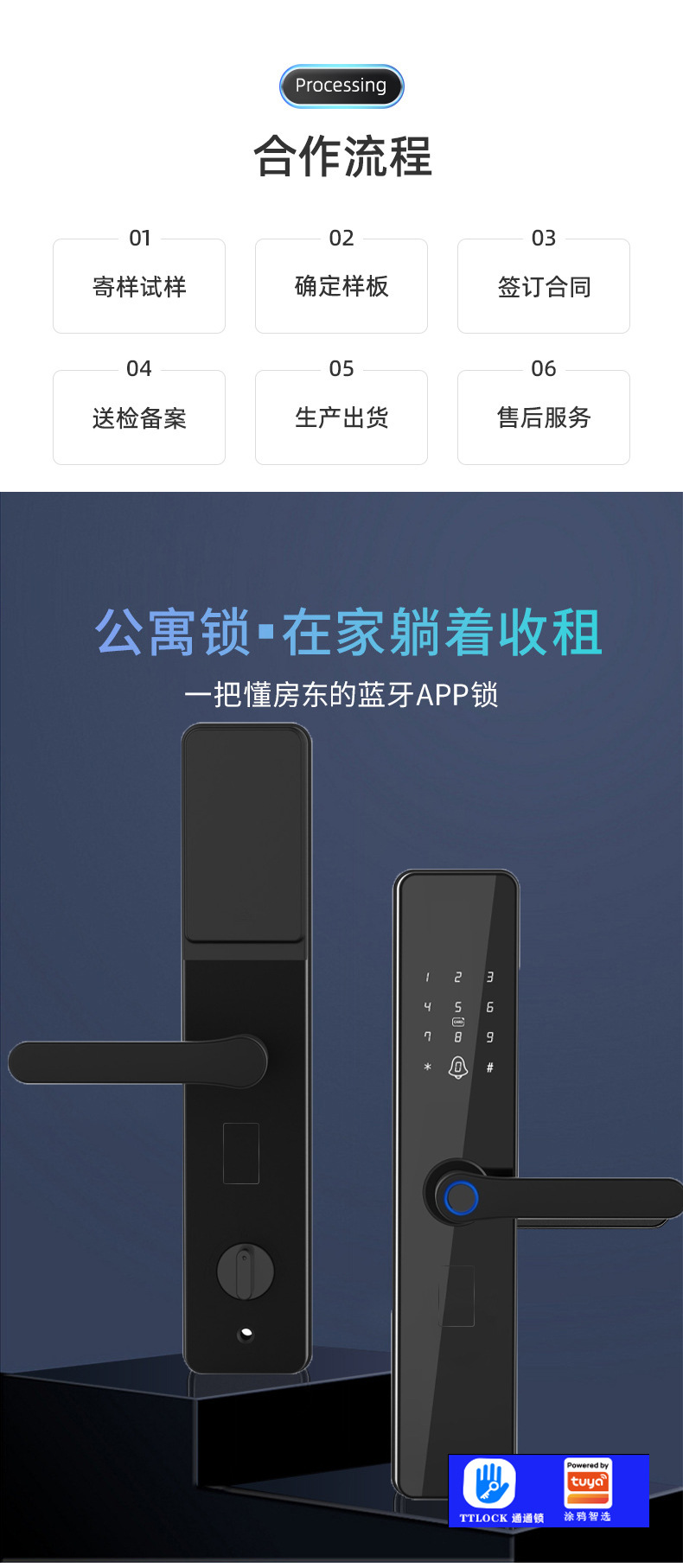 通通锁公寓锁指纹密码蓝牙民宿酒店涂鸦WiFi多国语言智能锁刷卡