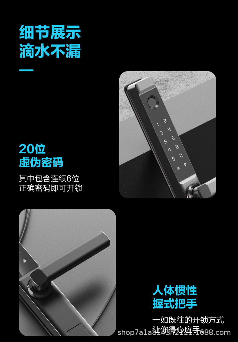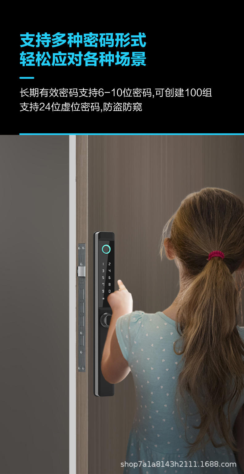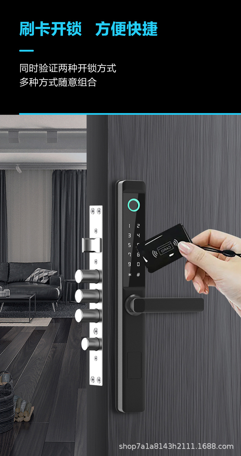 断桥铝智能锁指纹锁庭院锁别墅防水通通锁涂鸦WiF多国语言i密码锁
