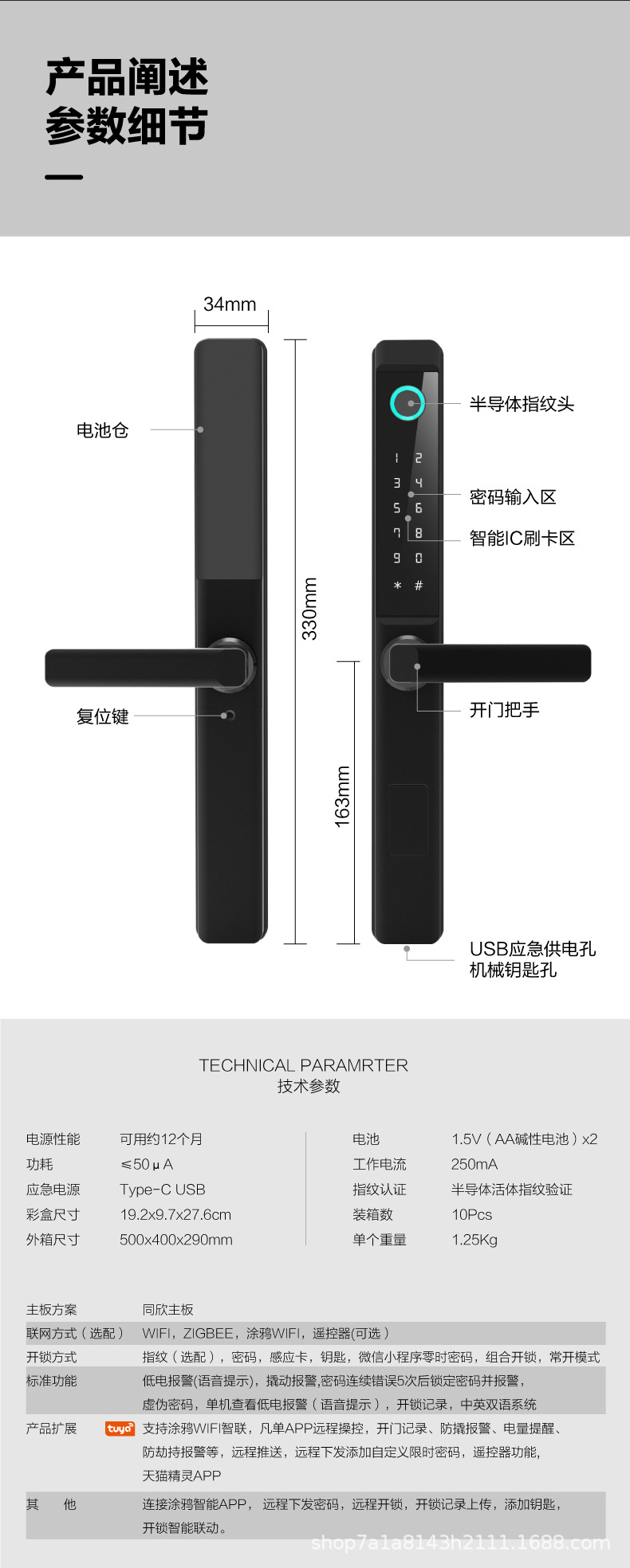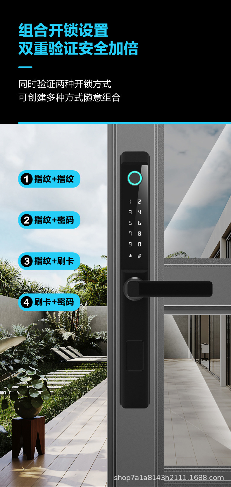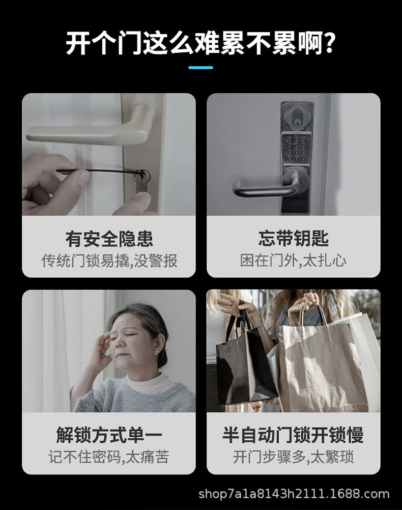 断桥铝智能锁指纹锁庭院锁别墅防水通通锁涂鸦WiF多国语言i密码锁