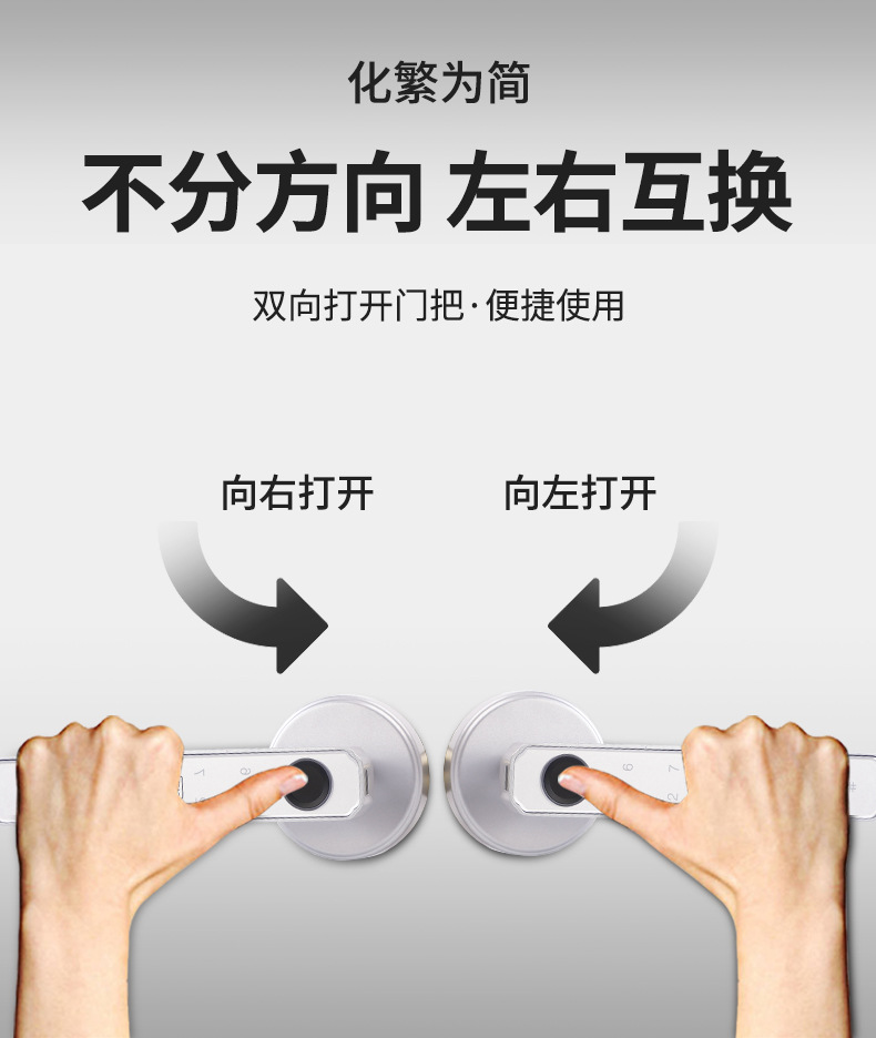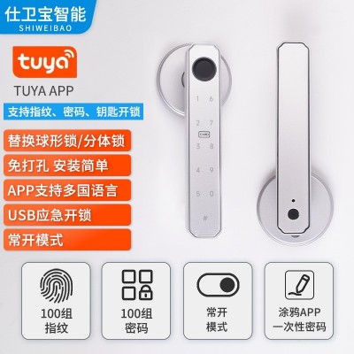 跨境批发室内三杆球形智能锁一握开家用木门改装指纹密码锁涂鸦锁