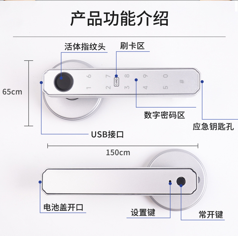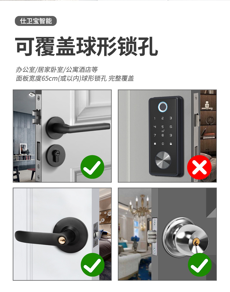 本产品适用于各种新装门,原有机械球锁三杆锁的改装升级(无需改孔,可实现自主DIY改装),如不确定能否使用,请咨询客服后再拍。