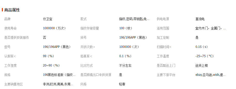 | 主营产品或服务 | 主营: 指纹锁 | ||