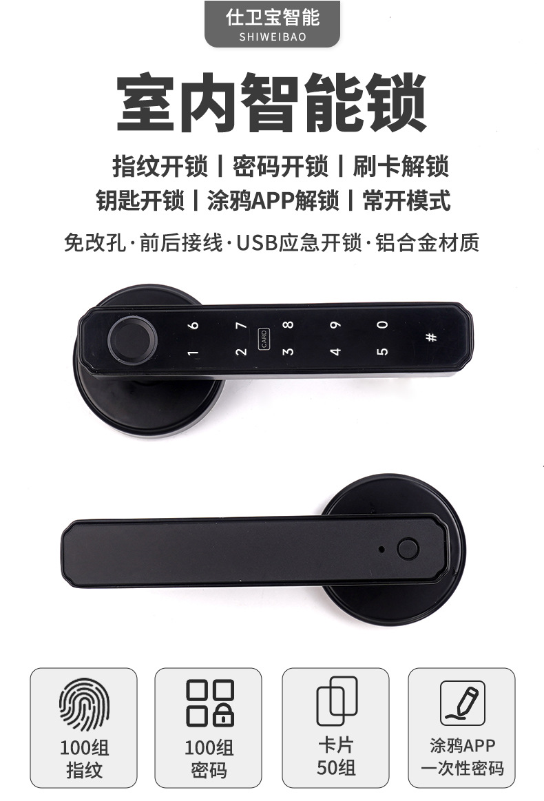 本产品适用于各种新装门,原有机械球锁三杆锁的改装升级(无需改孔,可实现自主DIY改装),如不确定能否使用,请咨询客服后再拍。