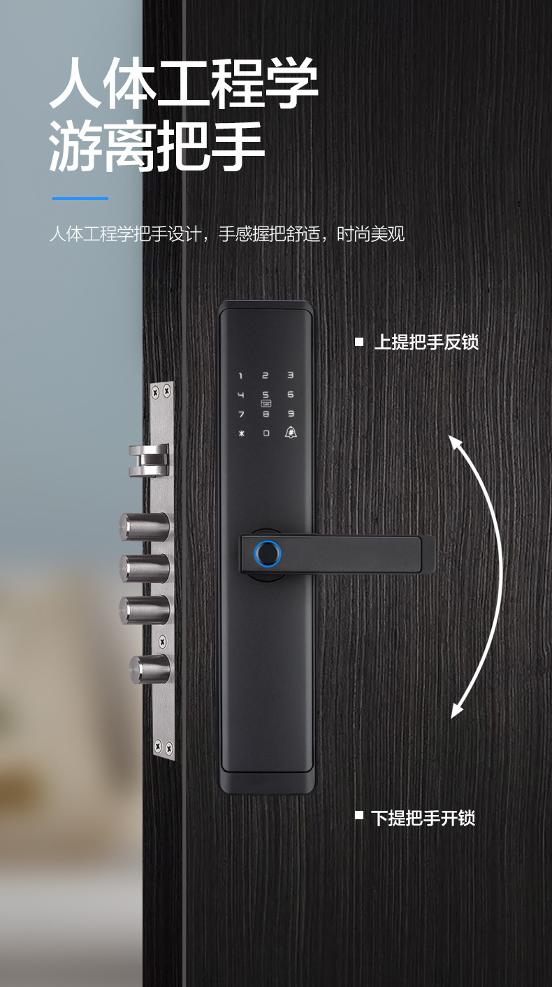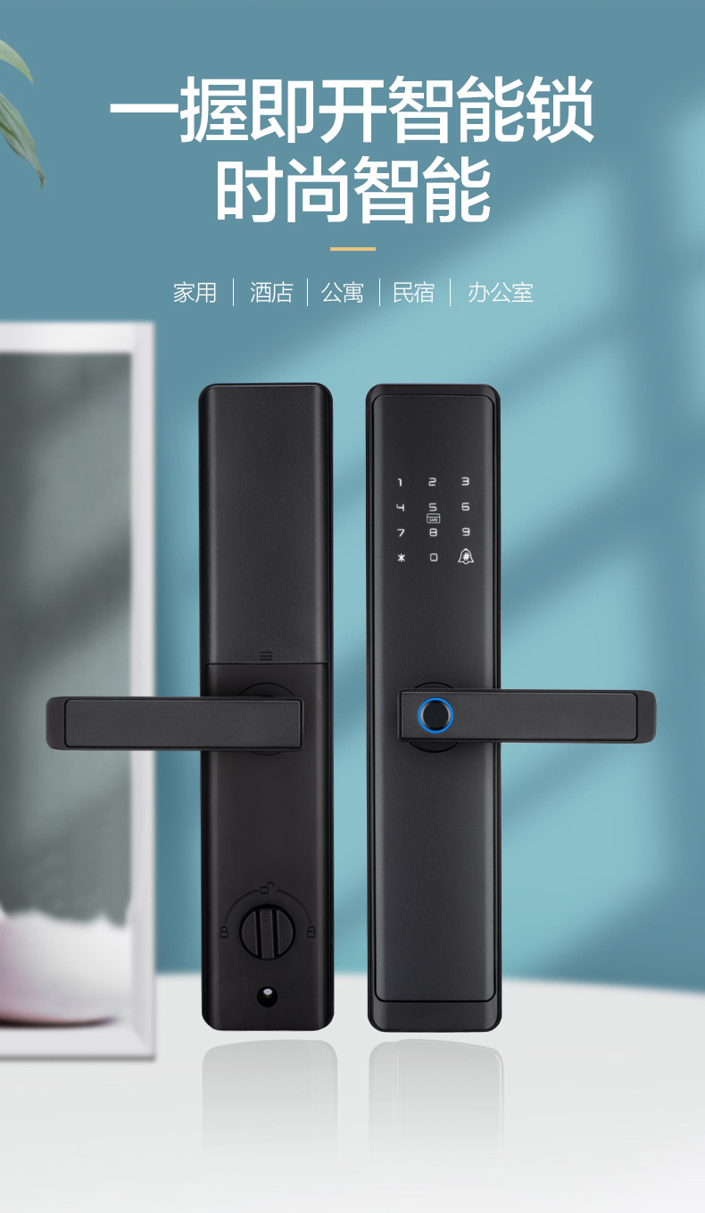 跨境涂鸦WiFi蓝牙通通APP远程操控智能锁一握即开指纹大门锁
