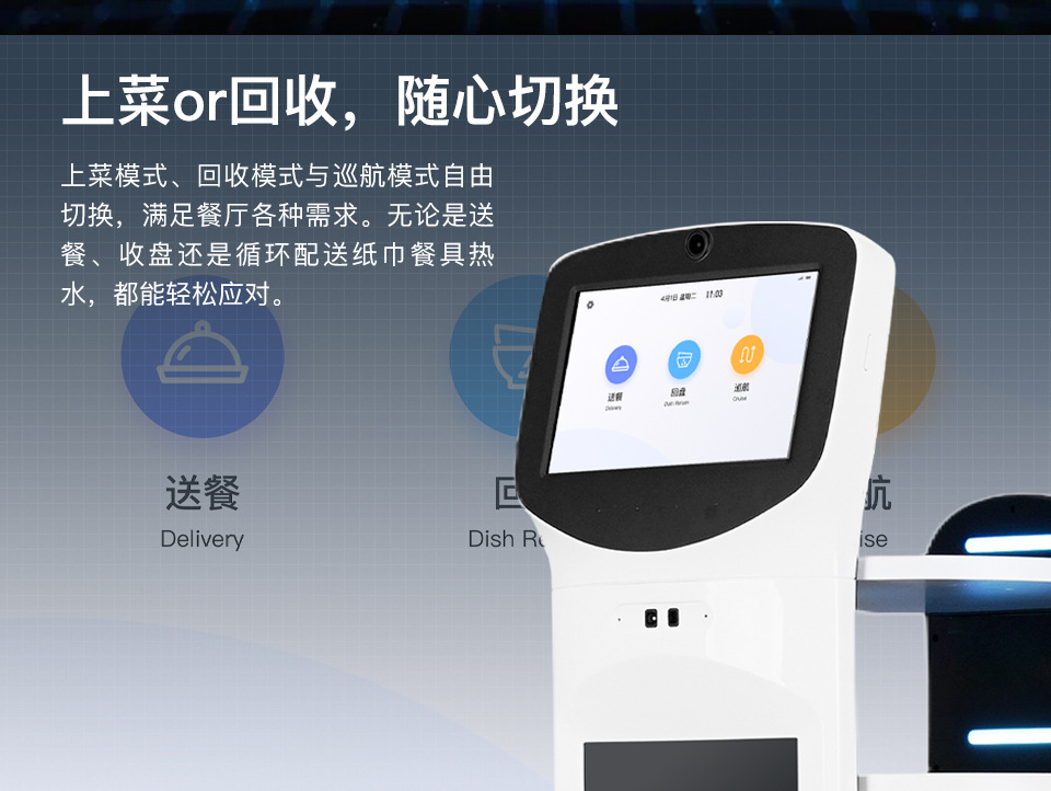 送餐机器人W3s 餐厅酒店上菜回收餐盘一次多桌配送自动避障
