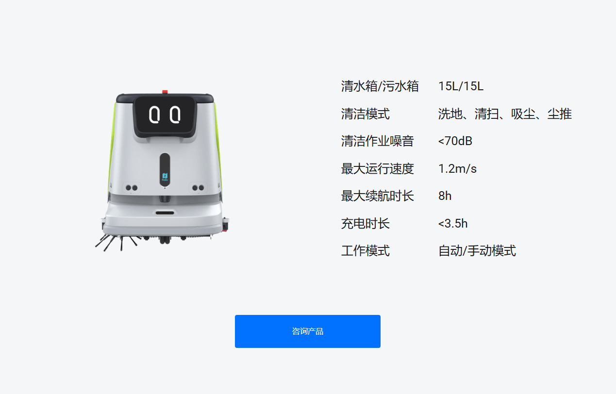 | 主营产品或服务 | 主营产品或服务: 商用清洁机器人; 清洁机器人; 酒店清洁机器人; 商用拖地机器人; 商用洗地机器人; 工厂清洁机器人; 工业清洁机器人; 商用送餐机器人; 商用迎宾机器人; 酒店送餐机器人; | ||