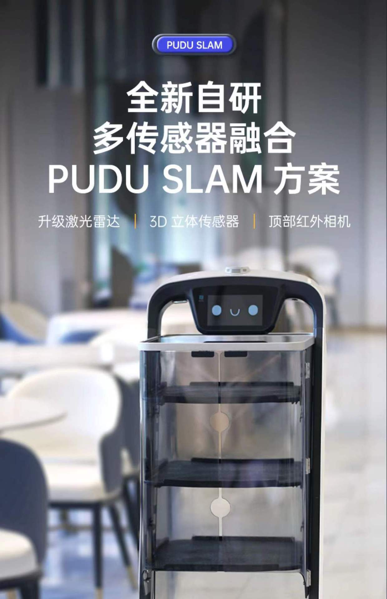 普渡欢乐送智能送餐机器人自动上菜餐厅酒店饭店配送工厂车间送物