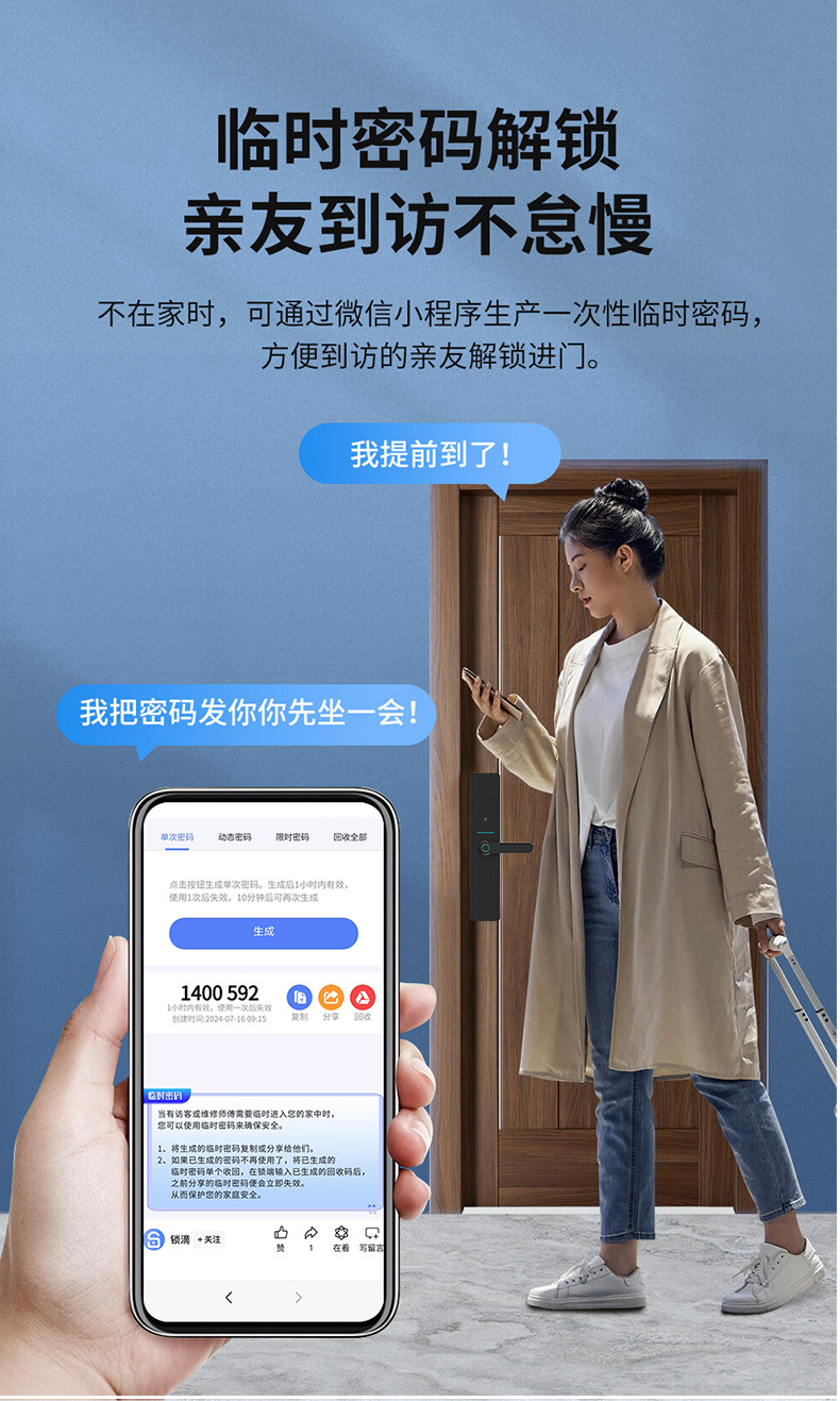 公寓锁公租房智能门锁民宿酒店出租房锁滴远程管理指纹锁密码锁
