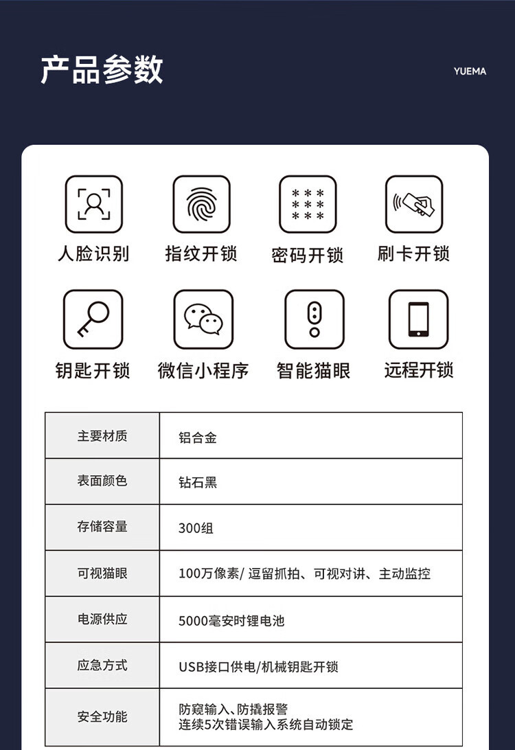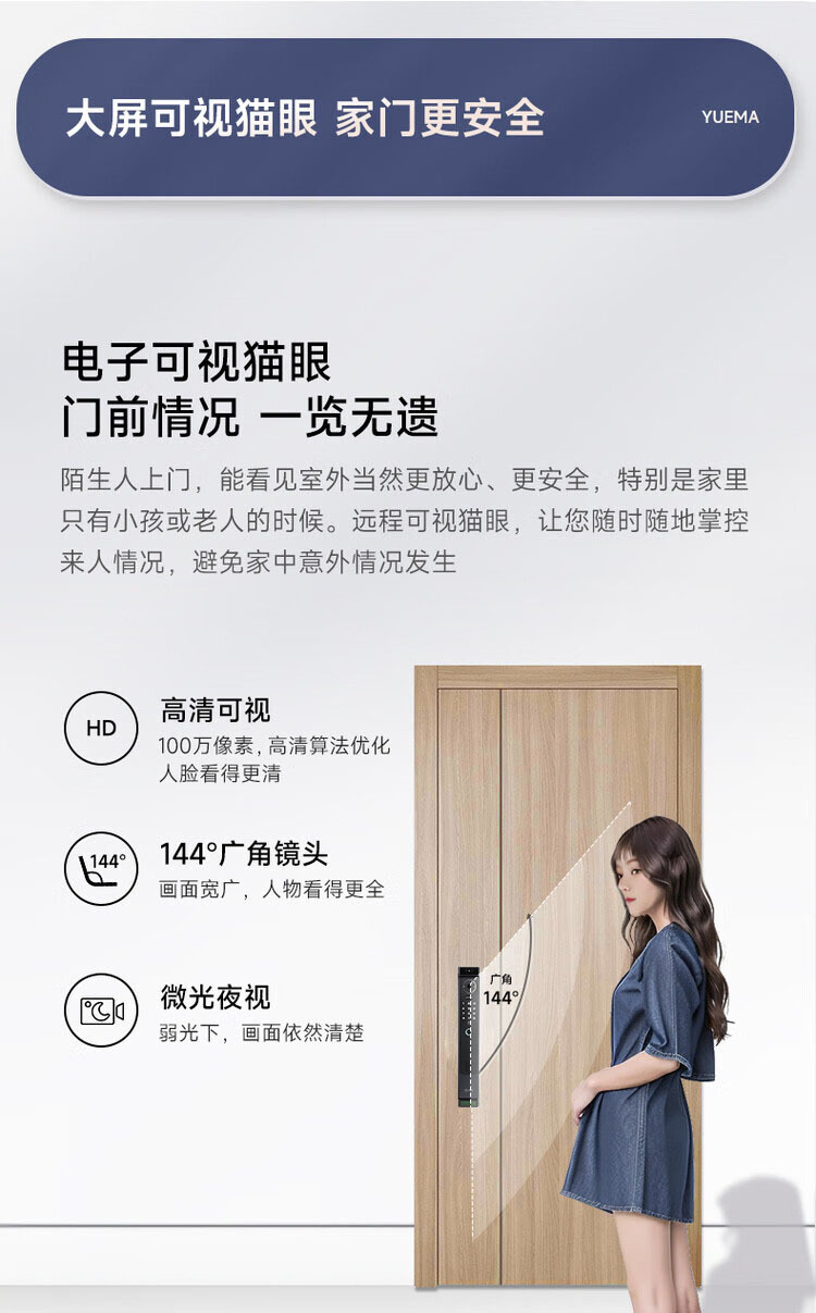 玥玛智能门锁3d人脸防盗门指纹密码锁智能家用全自动带监控摄像头