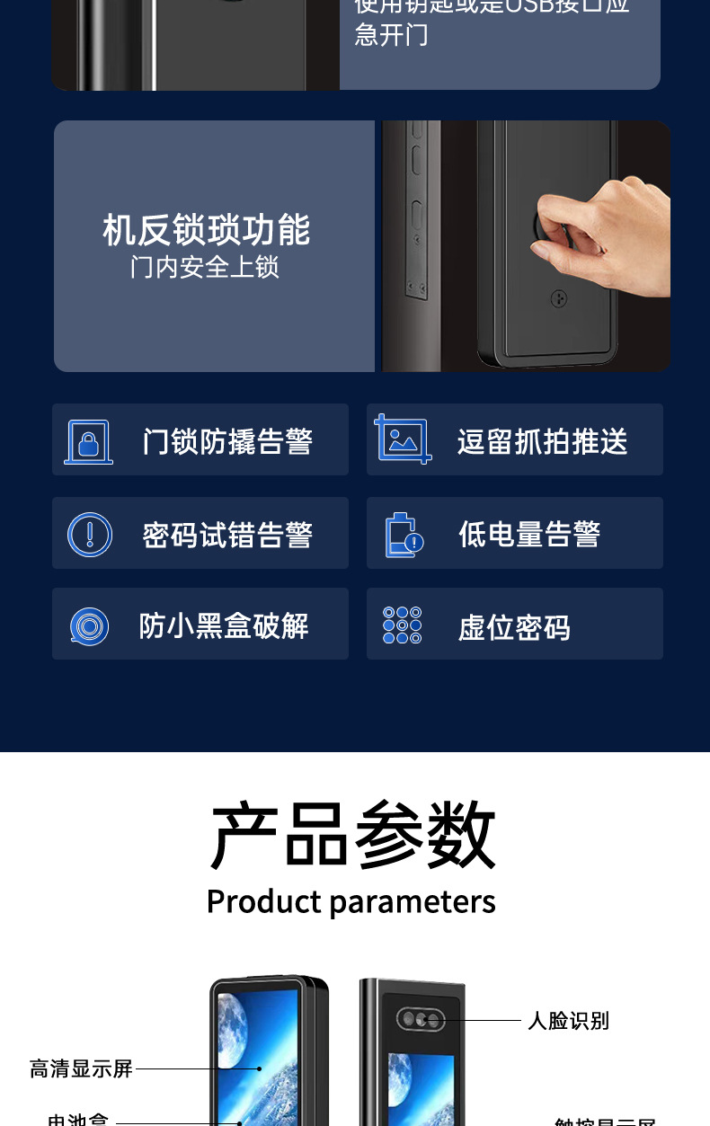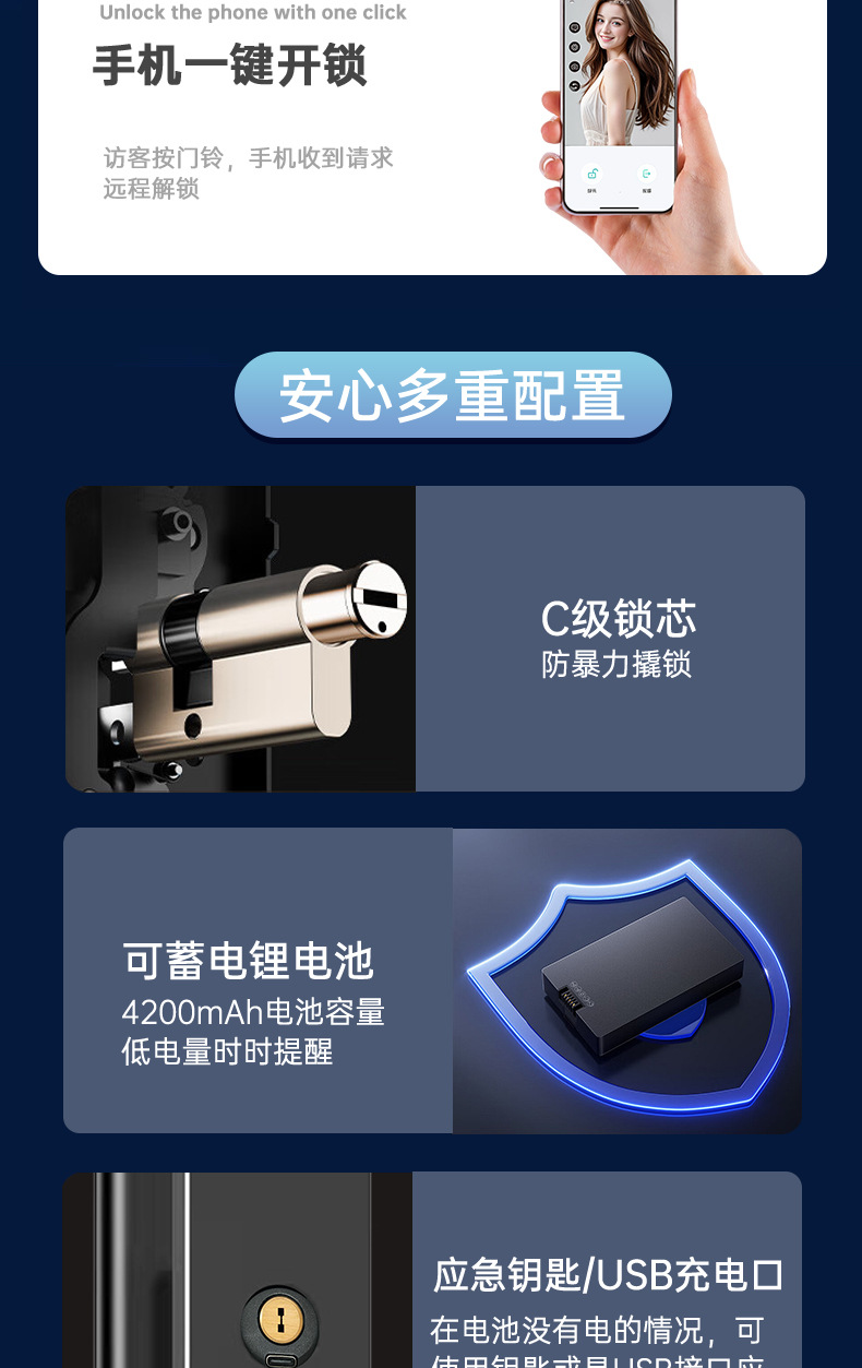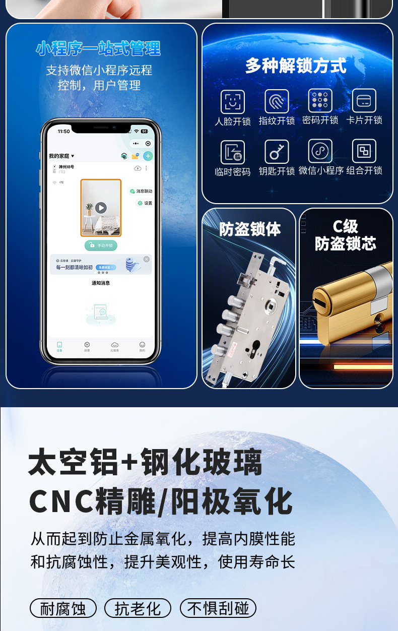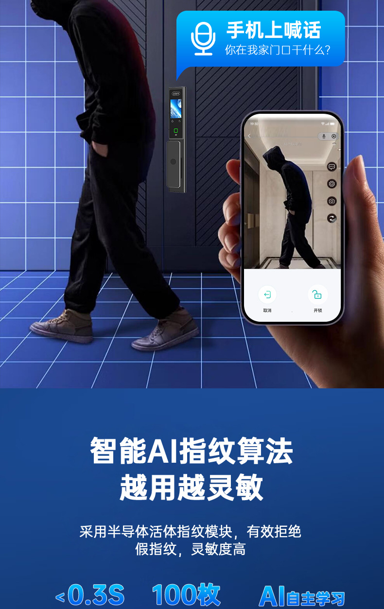 智能门锁3d人脸防盗门家用全自动指纹密码锁c级芯锁带监控摄像头