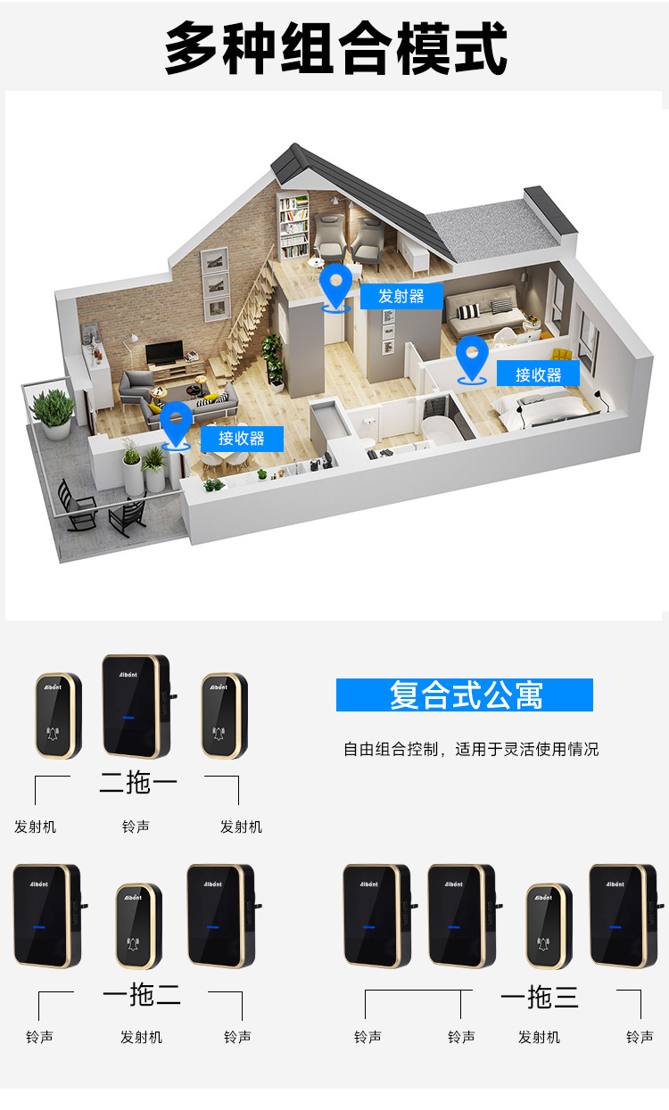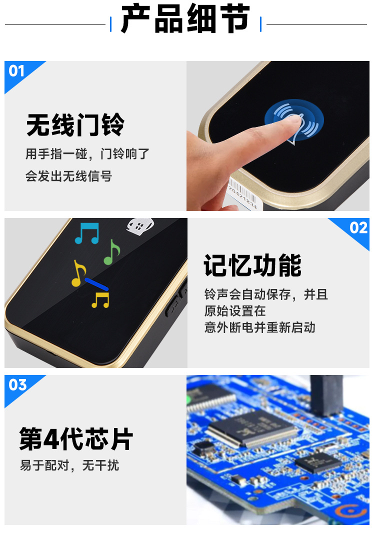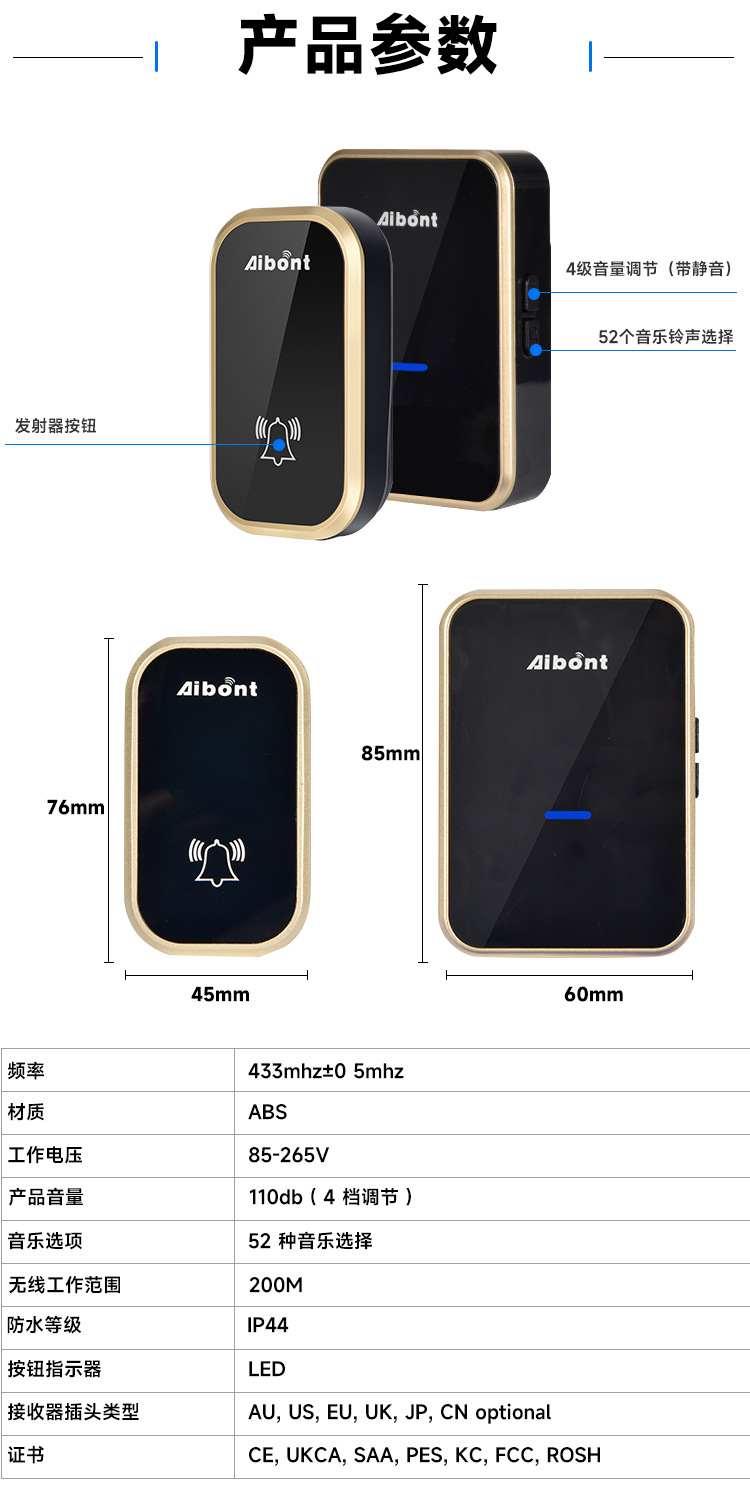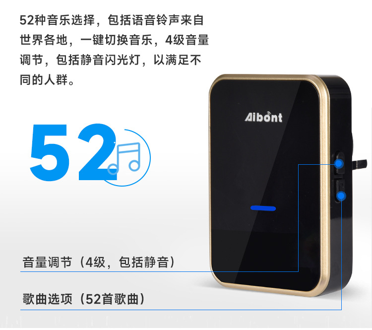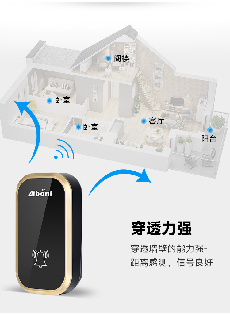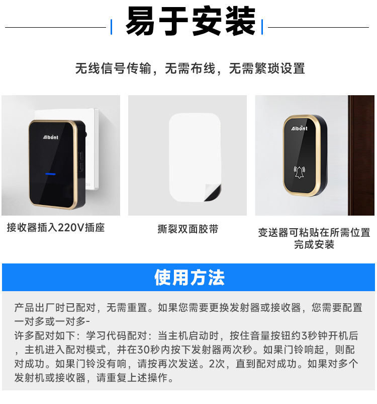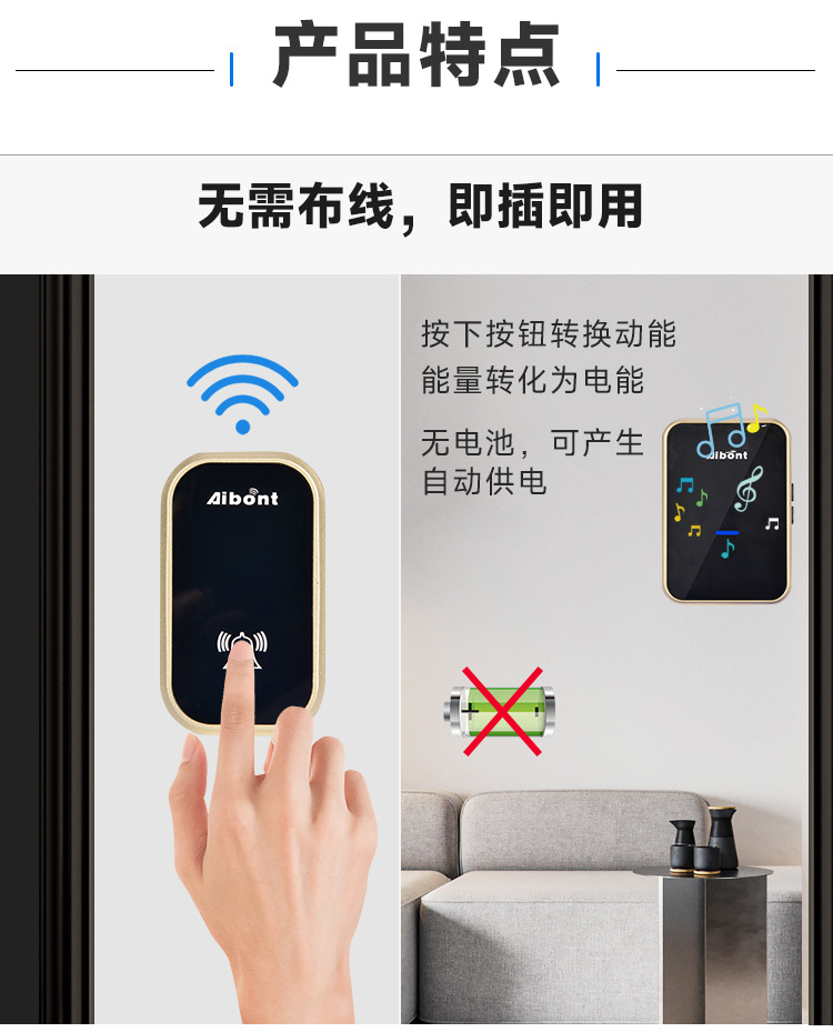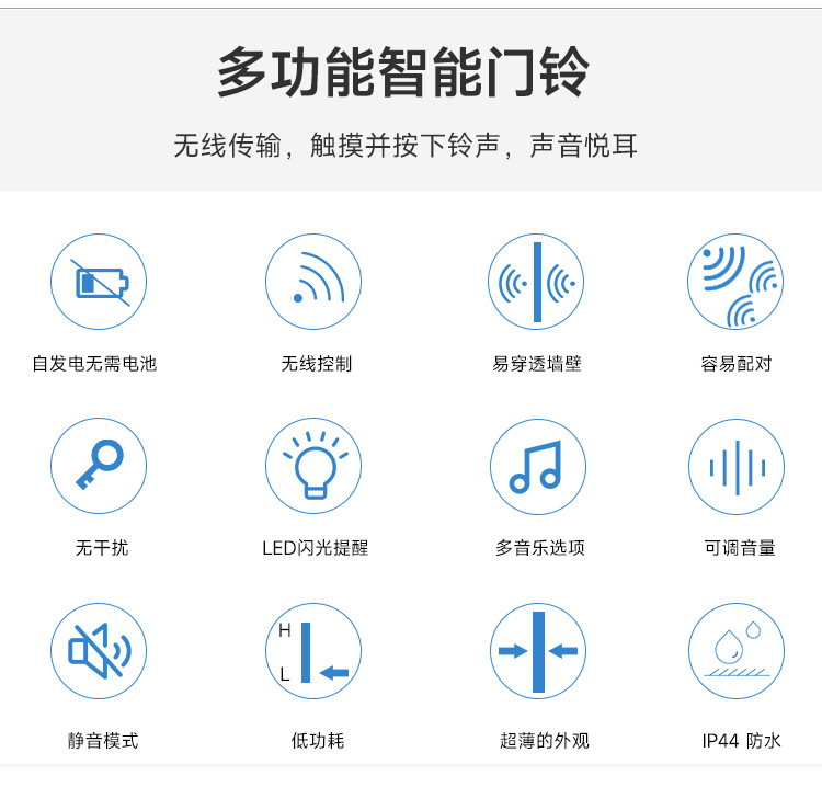 自发电门铃智能无线门铃家用远距离门铃呼叫器厂家批发跨境专供